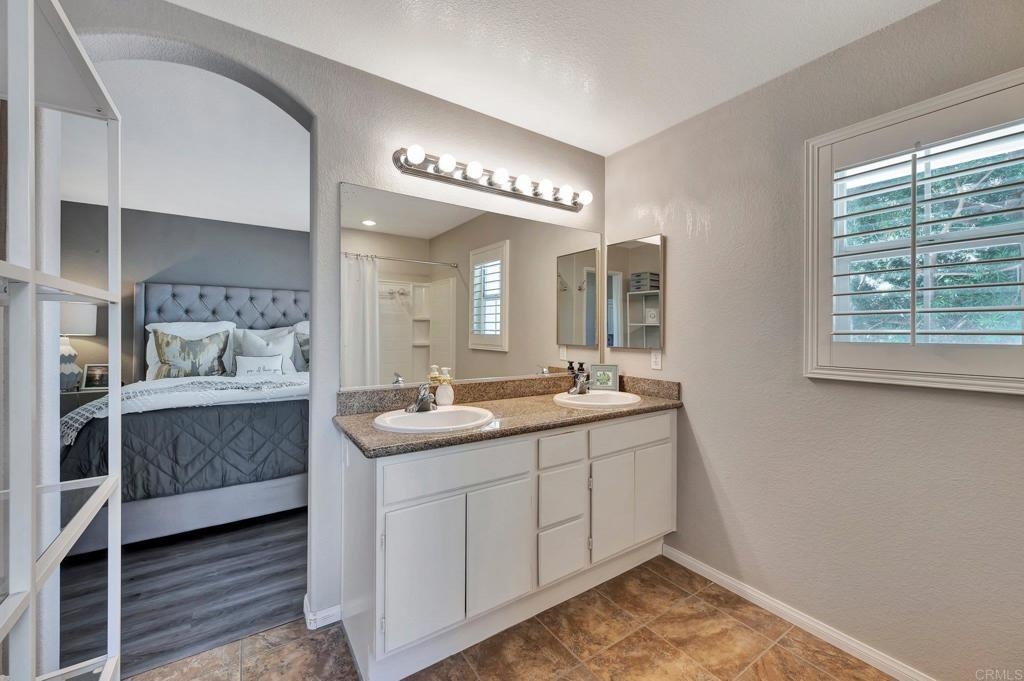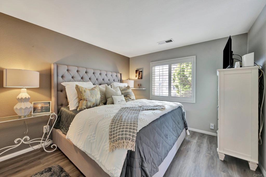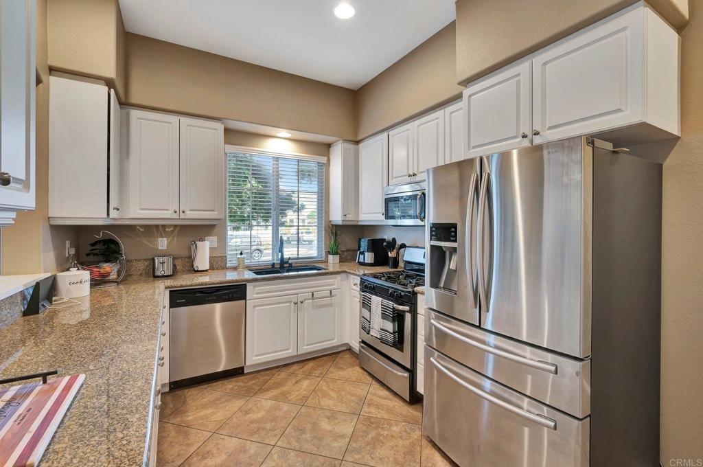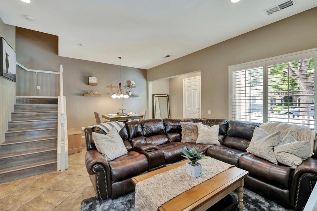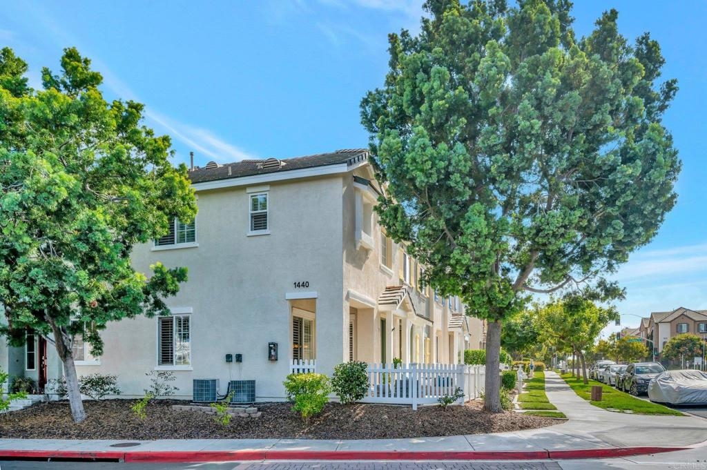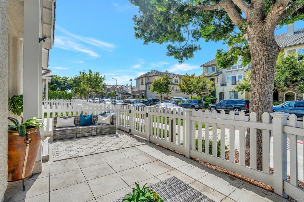 Gorgeous corner unit in the Monet complex Otay Ranch - Highly desired 3 bedroom, 2.5 bath with attached two car garage and spacious fenced front patio is ready for you! This beauty offers a generous sized kitchen with plenty of white cabinets, granite counters and stainless appliances. Oversized great room with dining area and family room has white shutters with very roomy entrance way. Updated luxury laminate on stairs, landing, upstairs hallway and bedrooms. Upstairs Primary bedroom with large bathroom and dual sinks, walk in closet. Other extras include white shutters, side by side laundry in garage, AC, storage system in garage and street parking is available. Both secondary bedrooms also upstairs. Best of all a comfortable outdoor space with plenty of room for dining, lounging and cooking. Community is well known for the parks and trails for daily activities and enjoyment! Community pool, park, and tot lot within walking distance. Near to Toll 125 , Otay Ranch Mall that offers shopping, movies, farmers market and fabulous eateries! Top rated schools, family friendly and public transportation just steps away!