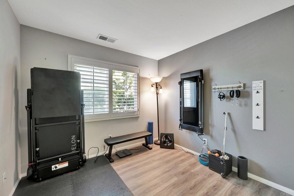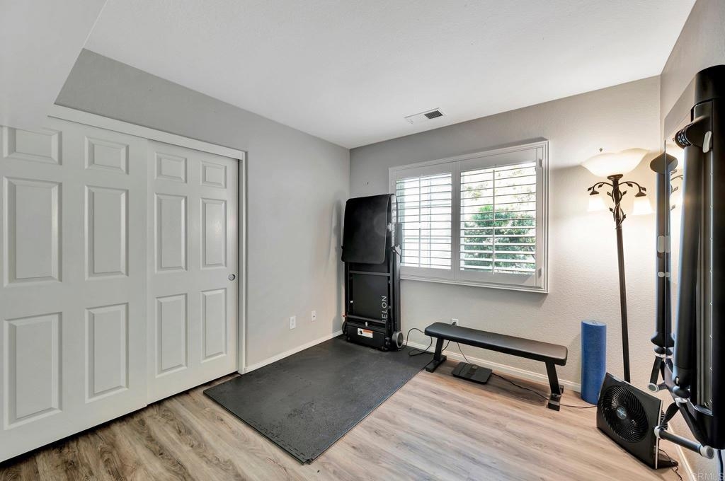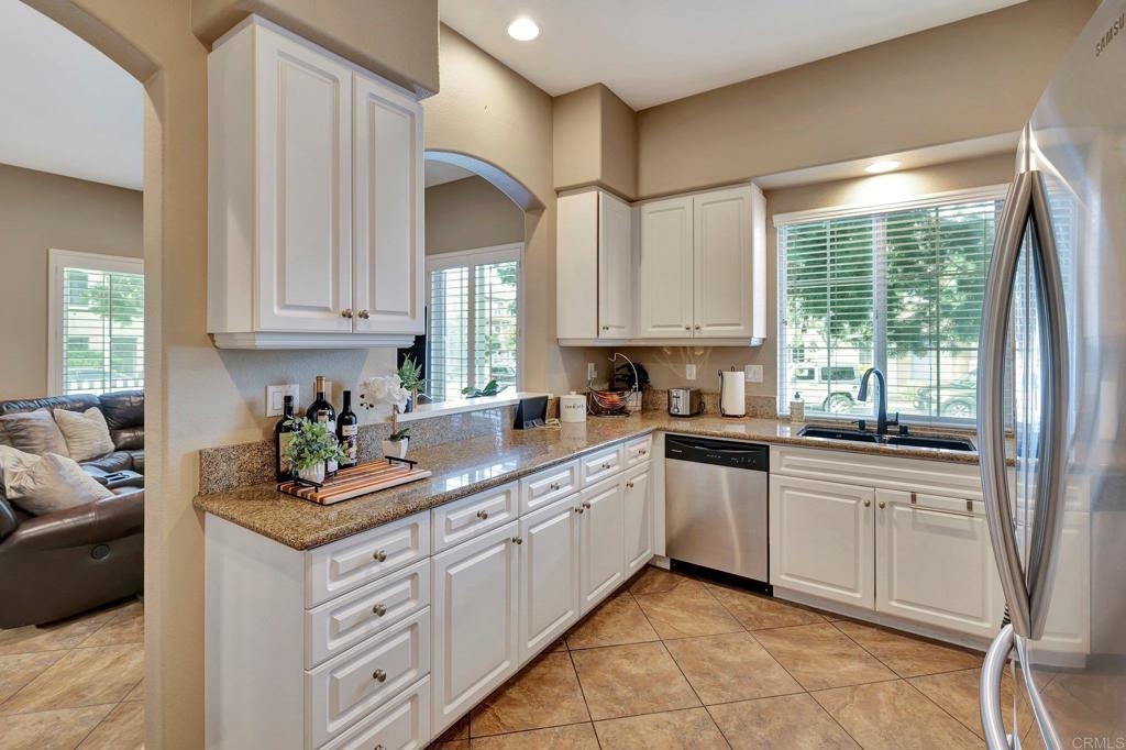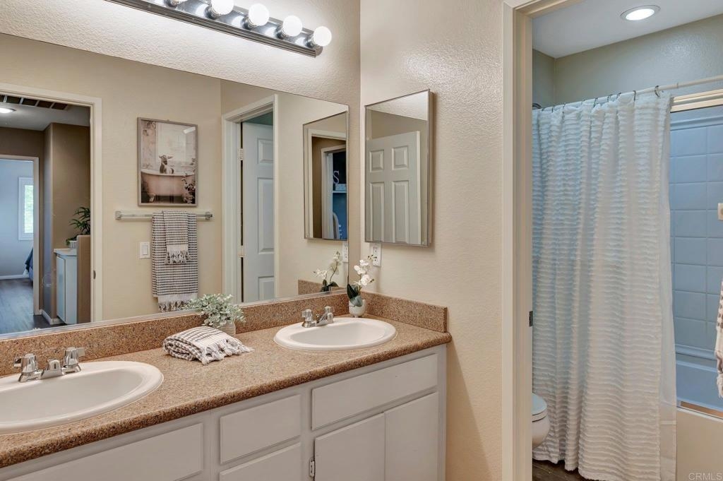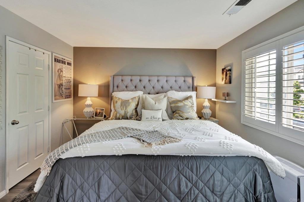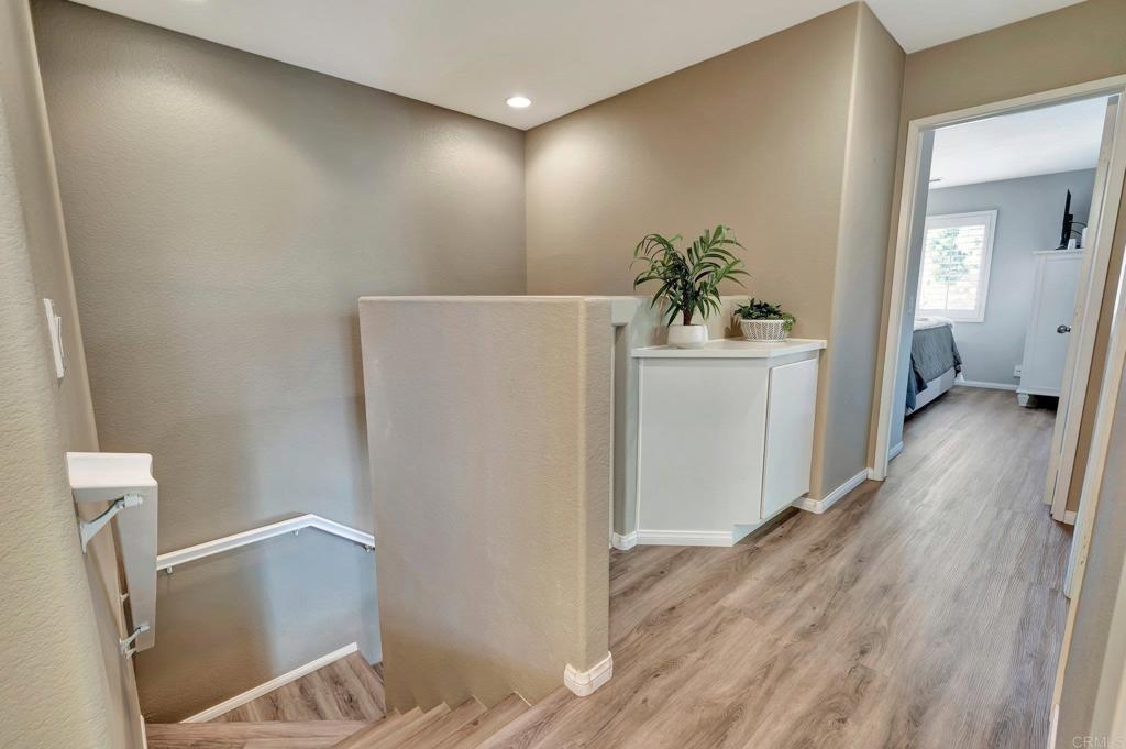 Gorgeous corner unit in the Monet complex Otay Ranch - Highly desired 3 bedroom, 2.5 bath with attached two car garage and spacious fenced front patio is ready for you! This beauty offers a generous sized kitchen with plenty of white cabinets, granite counters and stainless appliances. Oversized great room with dining area and family room has white shutters with very roomy entrance way. Updated luxury laminate on stairs, landing, upstairs hallway and bedrooms. Upstairs Primary bedroom with large bathroom and dual sinks, walk in closet. Other extras include white shutters, side by side laundry in garage, AC, storage system in garage and street parking is available. Both secondary bedrooms also upstairs. Best of all a comfortable outdoor space with plenty of room for dining, lounging and cooking. Community is well known for the parks and trails for daily activities and enjoyment! Community pool, park, and tot lot within walking distance. Near to Toll 125 , Otay Ranch Mall that offers shopping, movies, farmers market and fabulous eateries! Top rated schools, family friendly and public transportation just steps away!
