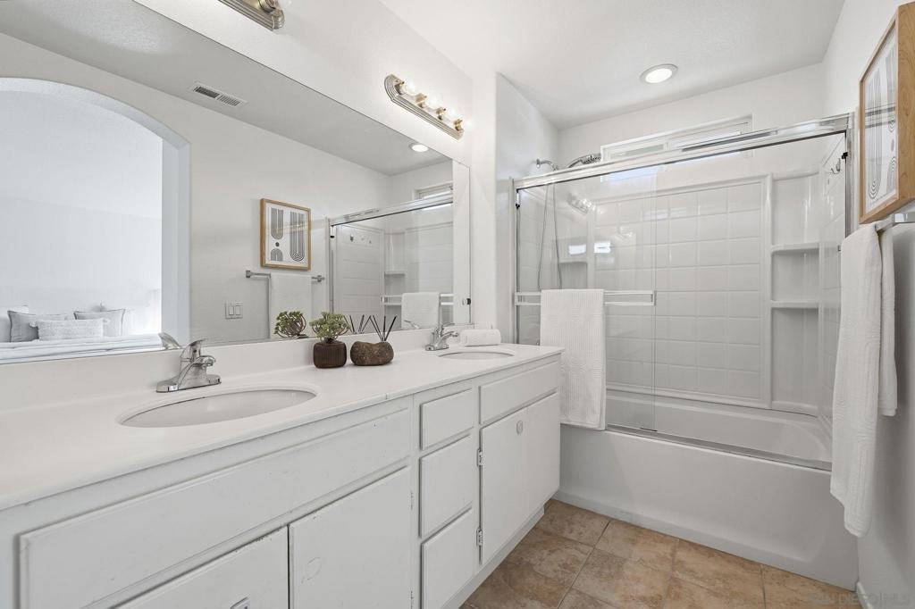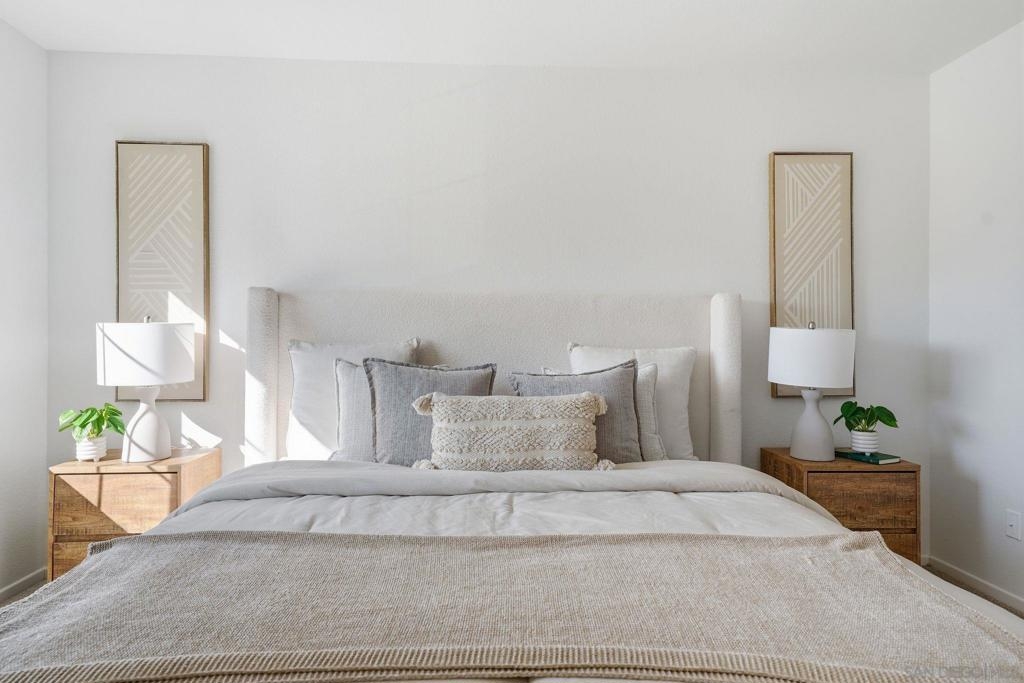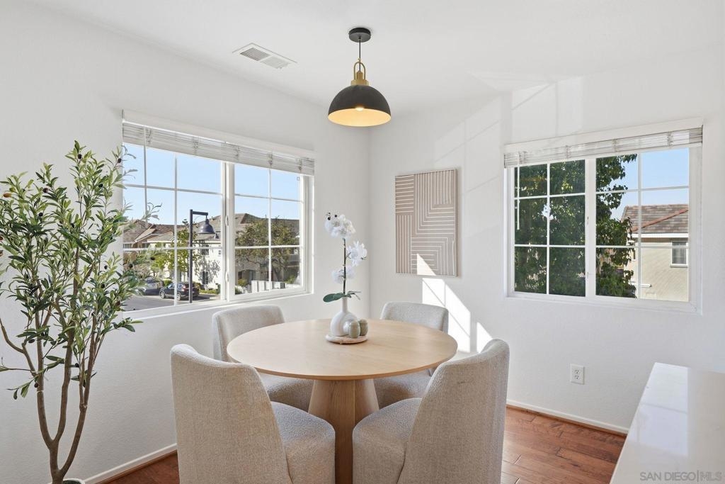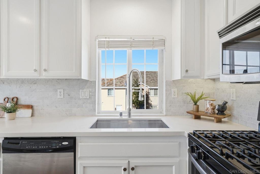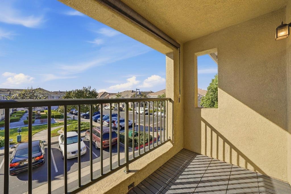 Bright, open, and beautifully refreshed, this 2 bedroom, 2 bathroom condo in Otay Ranch offers comfortable living with a clean, modern feel. Natural light fills the main living space, highlighting the wide plank flooring and seamless flow between the living, dining, and kitchen areas. The kitchen features white cabinetry, quartz countertops, a marble backsplash, ample prep space, and a functional layout that opens to the heart of the home. Step through the sliding doors to a private balcony with neighborhood views perfect for morning coffee or unwinding at the end of the day. Both bedrooms are well proportioned, and the two full bathrooms provide convenience and privacy. Washer and dryer are located inside the unit for everyday ease. This home also includes two parking spaces: a one car garage plus an additional assigned space, offering valuable flexibility for parking and storage. Located in the established community of Otay Ranch, this home provides access to nearby parks, shopping, dining, and commuter routes while maintaining a peaceful residential setting. Clean lines, great light, and an easy floor plan make this home ready to enjoy from day one.