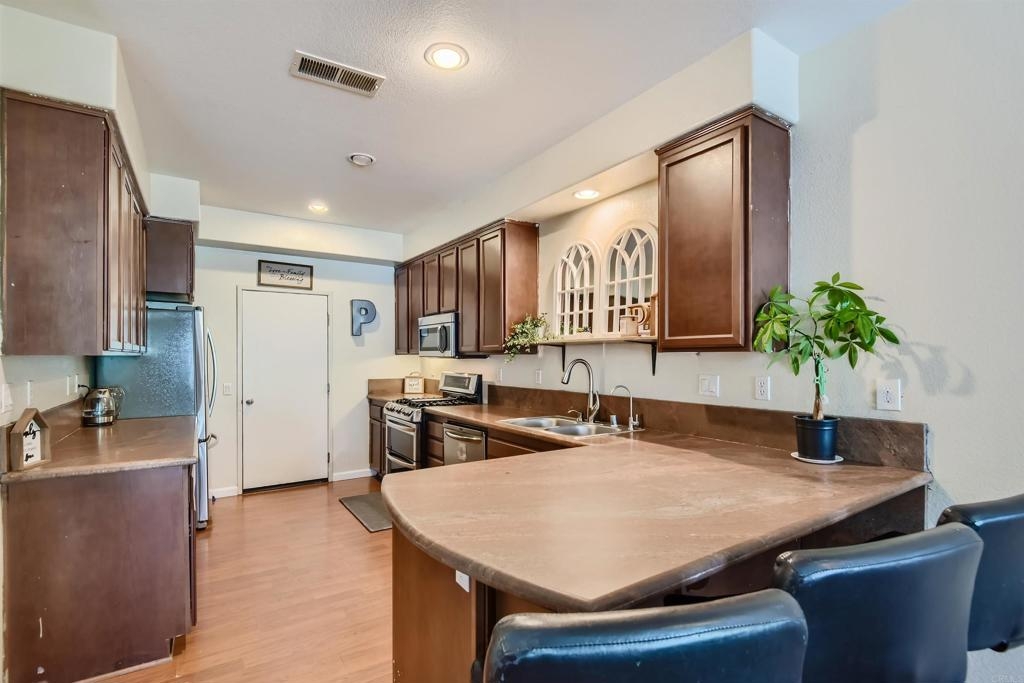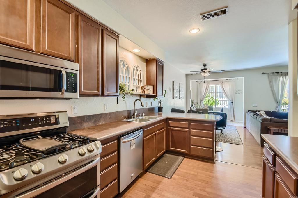 Welcome to this charming 3-bedroom, 2.5-bathroom, 2-story condo nestled in the Monet Complex of Otay Ranch. As you approach the unit, you'll be greeted by a delightful patio area adorned with a classic white picket fence, setting the tone for a warm and inviting home. Step inside to discover an open-concept design that seamlessly connects the dining area, living room, and kitchen creating a spacious and inviting atmosphere. The kitchen boasts stainless steel appliances, granite countertops, and a water filtration system under the sink. For added convenience when entertaining guests, there's a thoughtfully placed half bathroom on the main floor. Venture upstairs to find all three cozy bedrooms, along with the remaining bathrooms. The primary suite is a retreat in itself, featuring an en-suite bathroom and a walk-in closet. Laminate flooring is in the living room, dining area, kitchen, hallways, stairs, and bedrooms, while the bathrooms are adorned with tile floors. This unit offers not only comfort but also practicality, with an attached 1-car garage for extra storage, secure parking, and washer/dryer hook-ups. In addition to the garage, you'll have one permitted parking spot for added convenience. The HOA includes community parks, sports court, and a pool. Location couldn't be better! Situated close to an array of restaurants, a mall, schools, and easy freeway access, this condo offers the ideal blend of suburban tranquility and urban convenience. Don't miss out on this fantastic opportunity to make this lovely property your own!