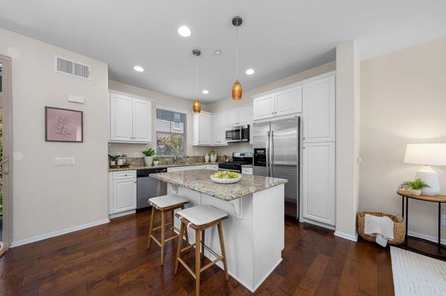 FHA & VA APPROVED. Back on the market due to buyer's inability to finance. Clean inspection and solid HOA. Cancelled escrow for no fault to the seller or property. Welcome to 1823 Peach Ct, Unit 9 — a beautifully updated 2-bedroom, 2.5-bathroom townhome offering the perfect blend of style, comfort, and convenience in one of Chula Vista’s most desirable communities. Step into a modern open-concept living space with new luxury vinyl plank flooring, fresh paint, and an upgraded kitchen boasting sleek granite countertops, custom cabinetry, and stainless steel appliances. Upstairs, each spacious bedroom offers ample closet space, including dual primary suites with en-suite bathrooms in each space. Enjoy the convenience of a full-size in-unit washer/dryer, central AC, an attached one-car garage, and an additional assigned parking space. The gated community features beautifully maintained grounds, a sparkling pool, and is walking distance to top-rated schools, parks, and trails.