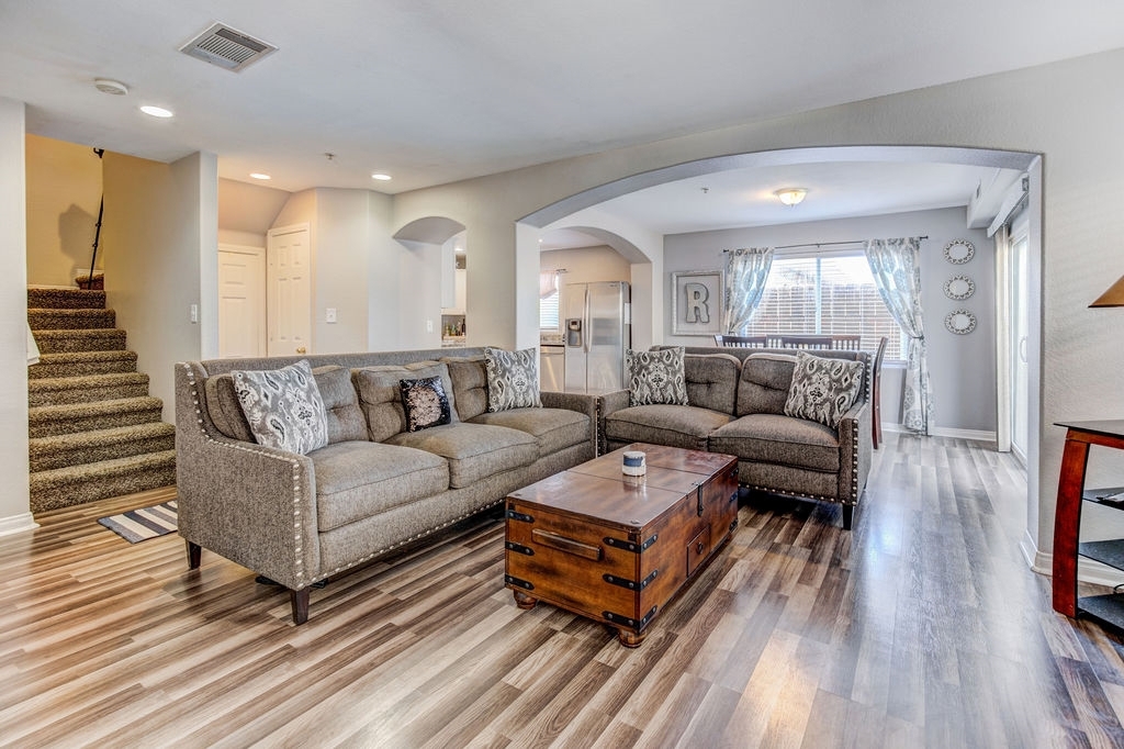 Large spacious town home light and bright with vaulted ceilings, laminate hardwood on first floor brand new paint through entire home. Huge master bedroom with large master bathroom and 3 additional large bedrooms. Private wrap around patio and attached two car garage. Located in a private gated community close to shopping and freeway access. Attached home with only 1 common wall, feels like a detached home. Gated complex with only 14 units and a children's playground area. No Mello Roos. Buyer to verify all to include SQFT, HOA and and tax info.. Neighborhoods: Chula Vista Equipment: Garage Door Opener, Range/Oven Other Fees: 0 Sewer: Sewer Connected Topography: LL