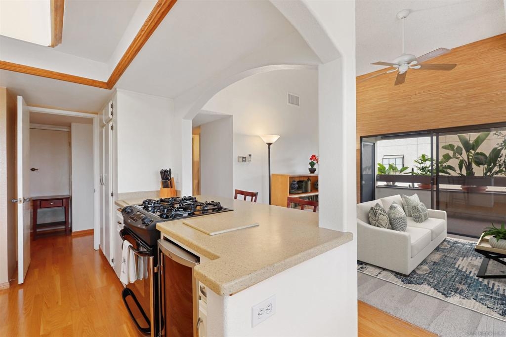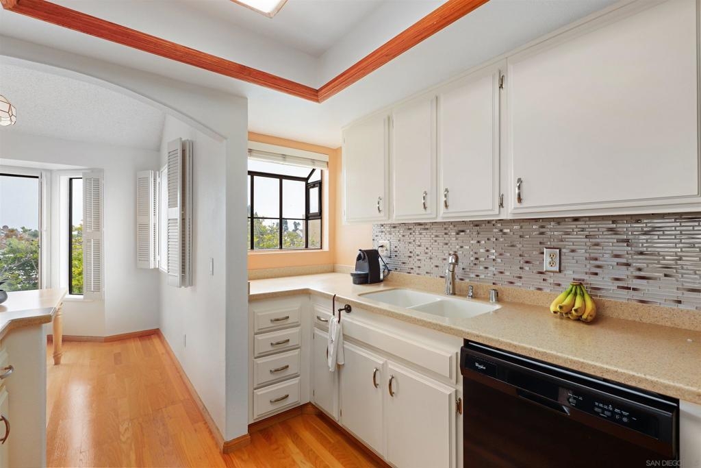 Discover your perfect coastal retreat in this spacious and bright top-floor 2 bed, 2 bath condo, featuring peek-a-boo ocean views! This private corner unit, with no shared walls, ensures tranquility and privacy. Vaulted ceilings create an open and airy atmosphere, enhancing the spacious feel of the home. The renovated open kitchen boasts Corian countertops and sink plus wine fridge and large pantry, perfect for culinary enthusiasts. Enjoy the convenience of in-unit laundry, complete with a washer and dryer, along with two dedicated parking spaces and elevator access for easy living. Meander onto the huge covered balcony through the large sliding door, seamlessly blending indoor and outdoor spaces. It's the perfect spot for morning coffee or evening sunsets. The primary bedroom features two closets - one of them is a large walk-in - providing ample storage space, while the additional large room offers versatility for guests or a home office. With tons of storage options throughout and a serene ambiance, this condo is designed for comfort and style. Conveniently located only 1.5 miles from the ocean and the new Gaylord Pacific Resort and Convention Center, mere blocks from the Chula Vista 3rd Avenue shops and next door to the Chula Vista Police Department. Don't miss the chance to own this exceptional home with ocean views and a perfect location. Embrace a lifestyle of relaxation and convenience in this beautiful coastal sanctuary!
