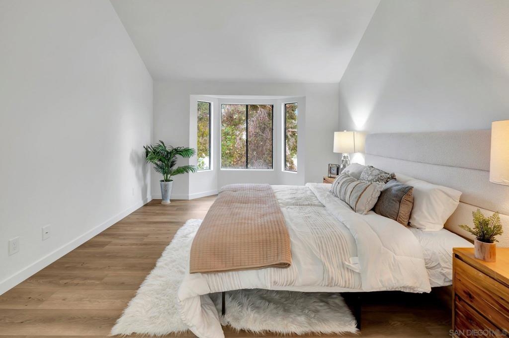 Don’t miss your chance to view this beautiful, meticulously remodeled 2-bedroom, 2-bathroom condo near downtown Chula Vista. Spacious living room and formal dining room with vaulted ceilings are perfect for entertaining. The updated kitchen includes new appliances, luxury vinyl plank flooring, and modern cabinets with self-closing hinges. Do not overlook the primary suite with a large walk-in closet, and it too has vaulted ceilings. Includes 2 parking spots, and in-unit laundry that will accommodate a full-size side-by-side W/D. The location is ideal as it is walkable to fine dining, a shopping mall, and the library. Beautiful sunset views and just a few miles from the ocean. This is a must-see home!