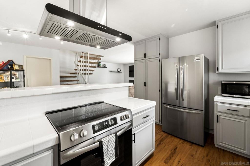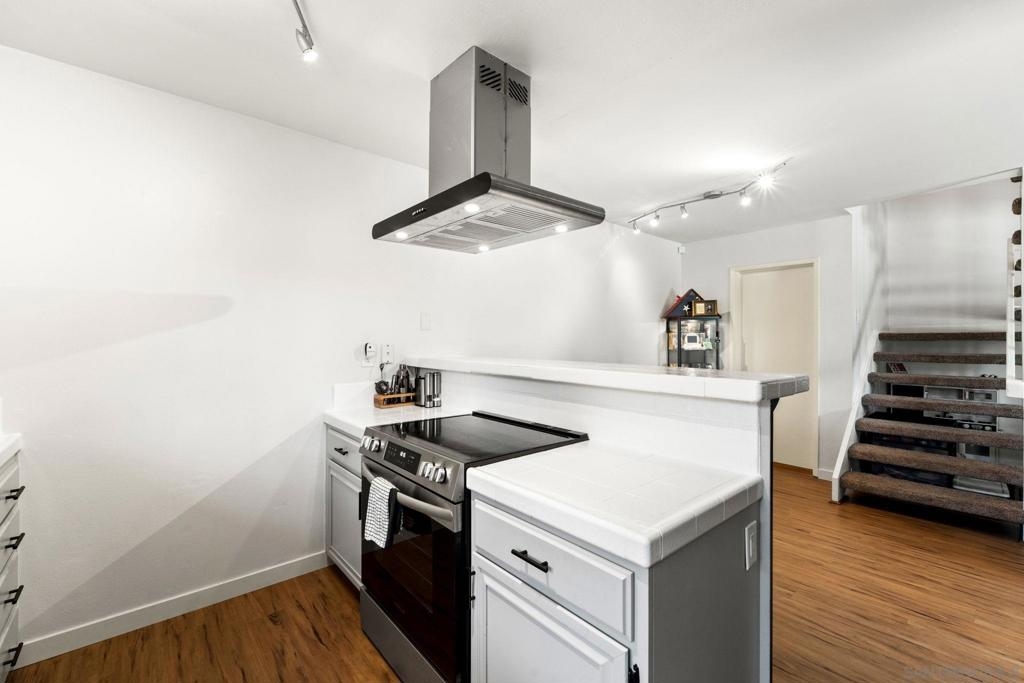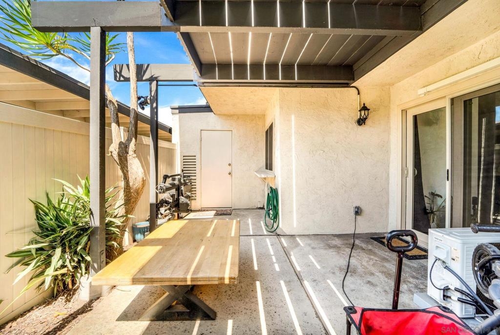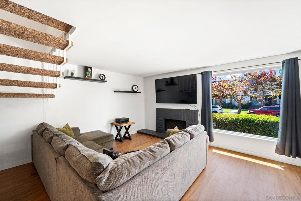 This delightful 3-bedroom, 1.5-bathroom townhome is nestled in the sought-after community of East Rios. This residence offers 1,228 square feet of thoughtfully designed living space. The interior welcomes you with high-quality vinyl flooring downstairs and plush carpet upstairs. Sunlight streams through the well-positioned windows and doors, brightening the space. The open-concept living area features a charming fireplace and a graceful birdcage staircase leading to the upper level. The kitchen has a deep sink with a contemporary faucet, and newly refreshed cabinets and countertops. Both bathrooms have undergone. Upstairs, the three bedrooms are complemented by a generously sized primary suite, complete with a spacious balcony. Additional conveniences include a separate laundry room, a large attic for ample storage.