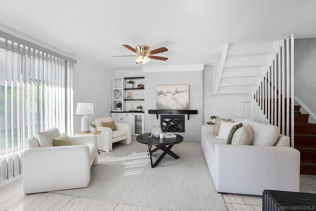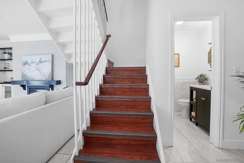 Welcome to this immaculate end unit-corner townhome at 273 Rancho Ct #C, featuring 3 Bedrooms and 1.5 Bathrooms in the sought-after Rancho Rios complex of Chula Vista. This recently and extensively upgraded unit offers approximately 1,274 square feet of comfortable living across two stories, showcasing beautiful tile flooring, fireplace, modern ceiling downstairs, perfectly complemented by brand-new luxury vinyl flooring in all upstairs bedrooms. The kitchen offers an open floor concept, ideal for entertaining, and comes complete with modern stainless steel appliances. Enjoy exceptional convenience with a large, private enclosed patio on the ground level, which includes a dedicated laundry room with washer and dryer hookups. The relaxing master bedroom upstairs features a desirable large balcony, and the property comes complete with two parking spaces, including one carport. Owners will also benefit from fantastic community amenities, including a sparkling pool and clubhouse. Located ideally for quick access to the I-805 freeway, major shopping, and dining, this move-in-ready home represents exceptional value and is perfectly suited for first-time buyers or those utilizing VA & FHA financing! Seller is entertaining offer between $549,999.00- $575,000.00