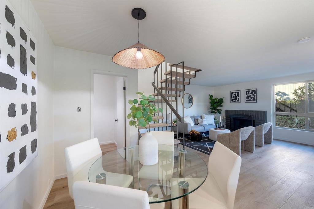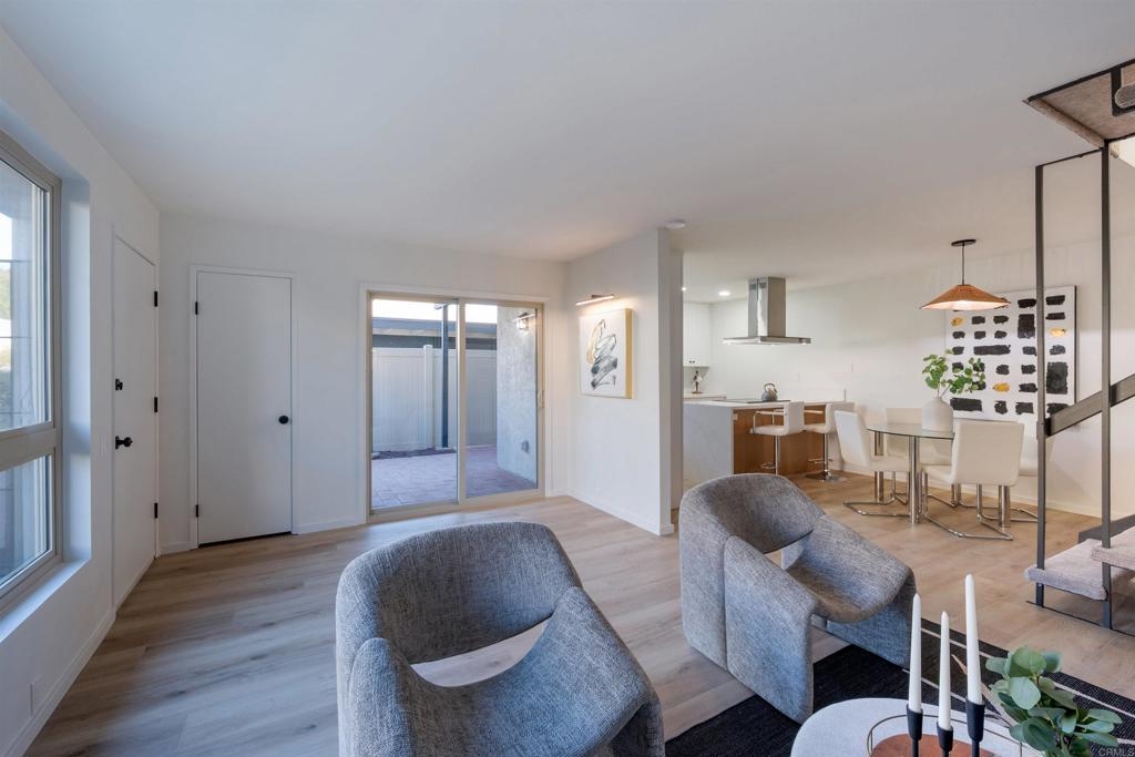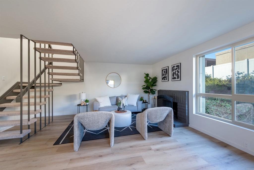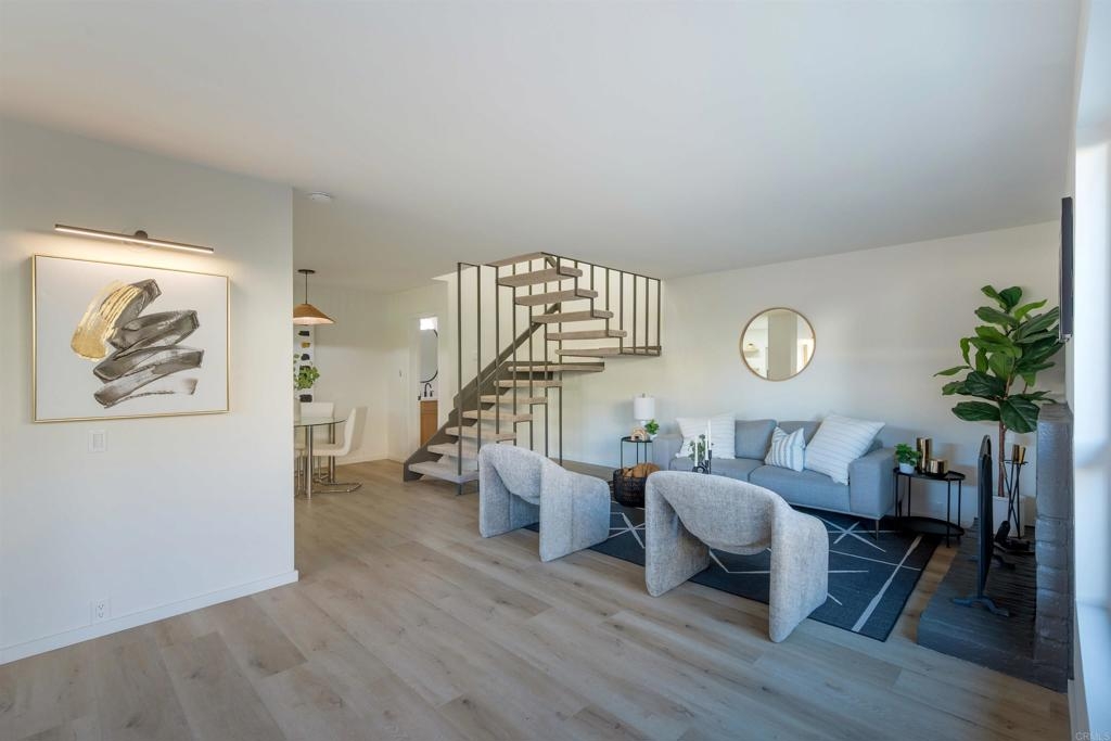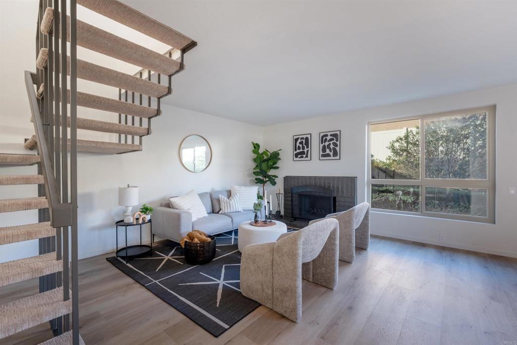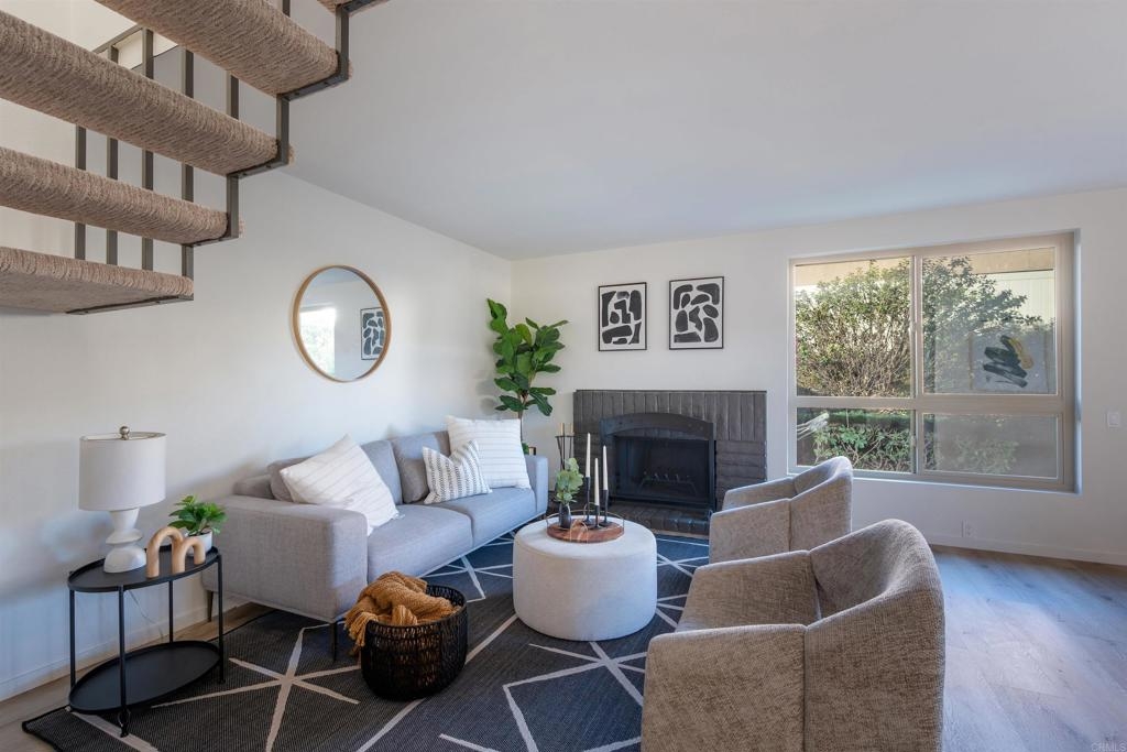 Complete Floor To Ceiling Remodel To Include New Vinyl Plank Luxury Flooring, New Counters in Kitchens and Baths, New Cabinets, New Faucets and Fixtures, New Paint! Feels Like New Townhome! 3 bedroom 1.5 bath with private, fenced backyard which includes closet for washer and dryer. Primary bedroom has balcony. Living room with fireplace. Complex has community pool, bike park and more! Close to 805 Freeway. Turnkey!!