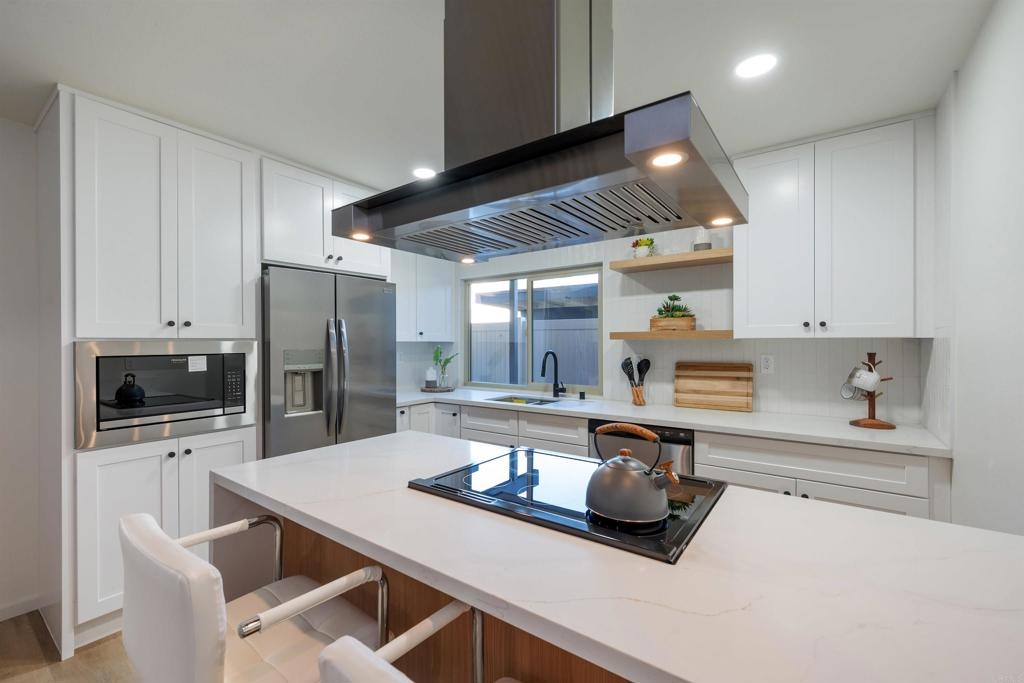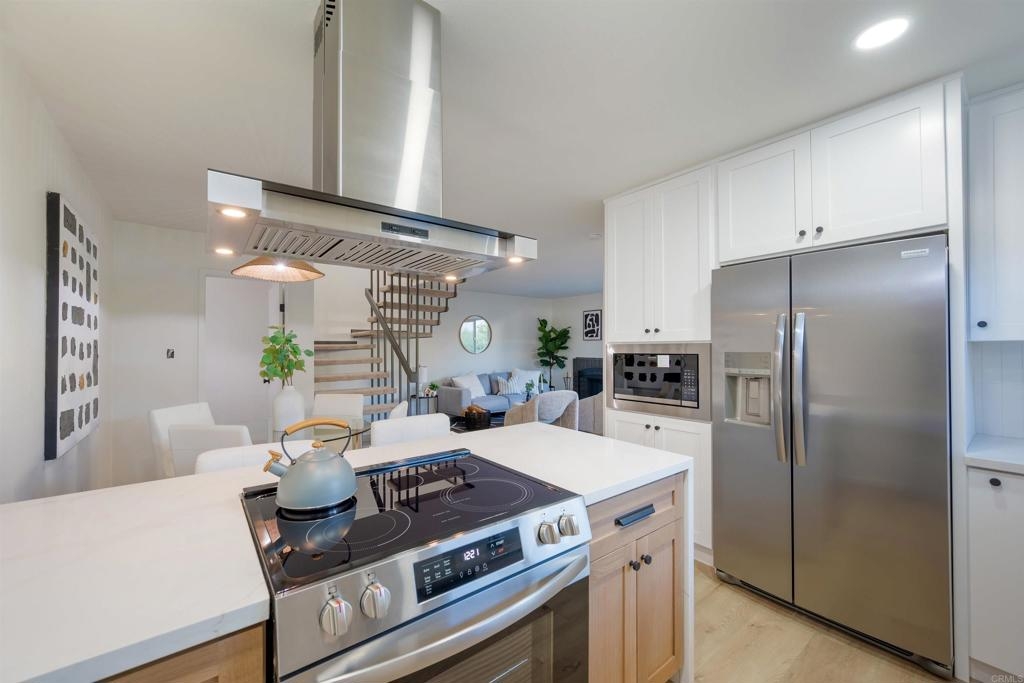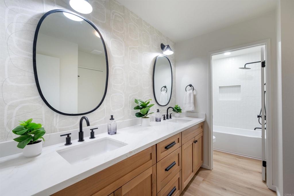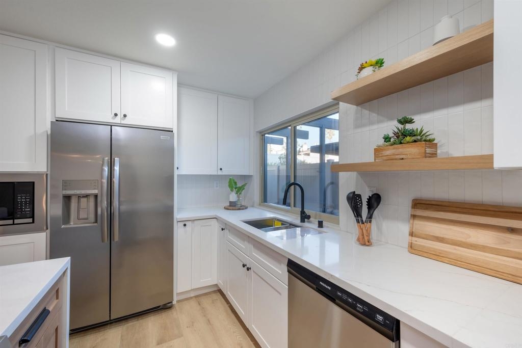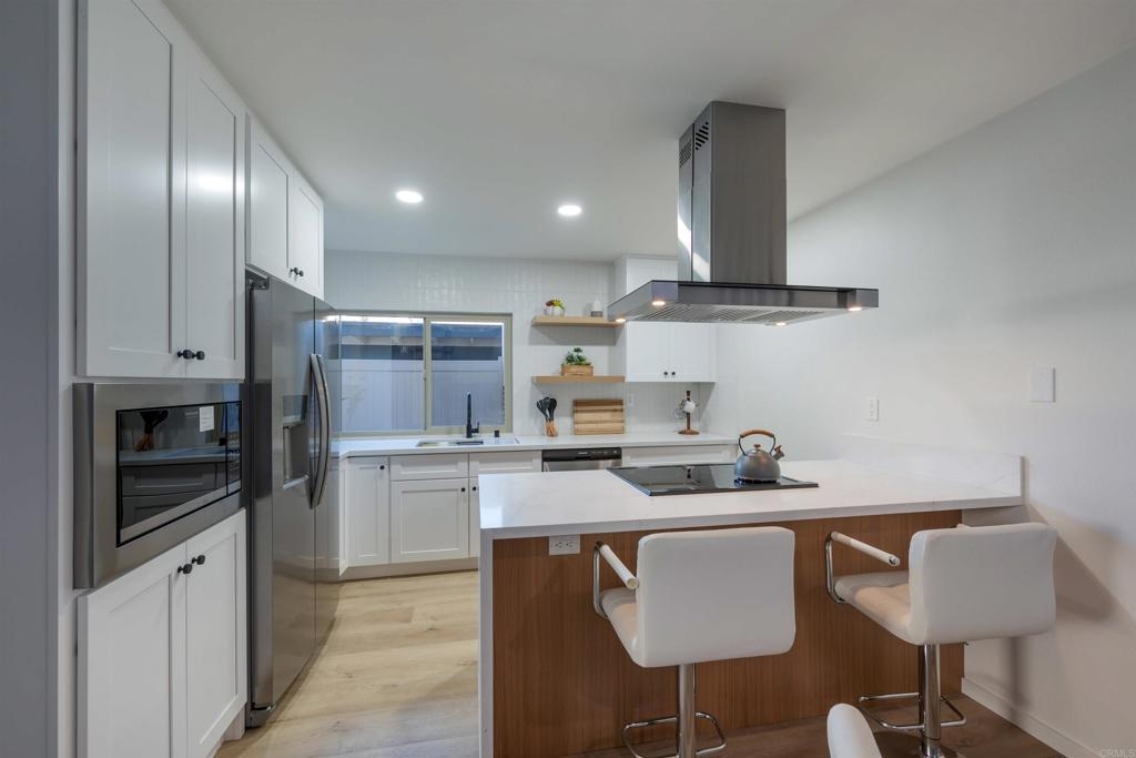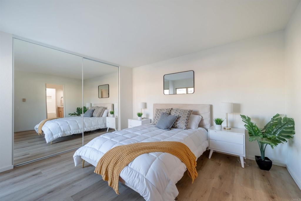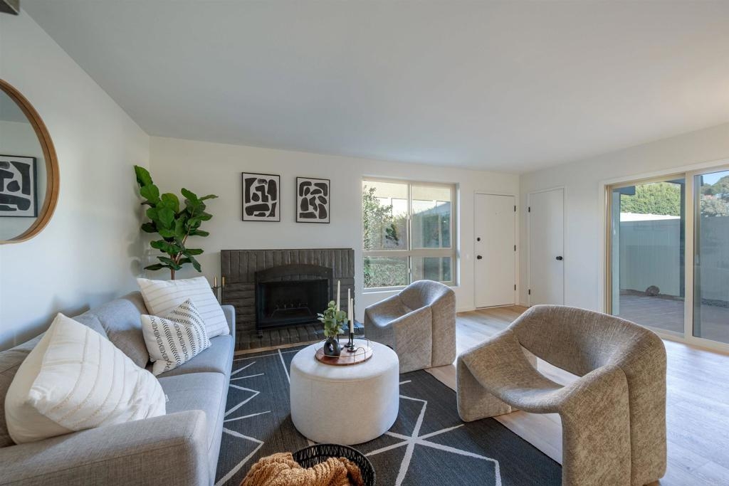 Complete Floor To Ceiling Remodel To Include New Vinyl Plank Luxury Flooring, New Counters in Kitchens and Baths, New Cabinets, New Faucets and Fixtures, New Paint! Feels Like New Townhome! 3 bedroom 1.5 bath with private, fenced backyard which includes closet for washer and dryer. Primary bedroom has balcony. Living room with fireplace. Complex has community pool, bike park and more! Close to 805 Freeway. Turnkey!!