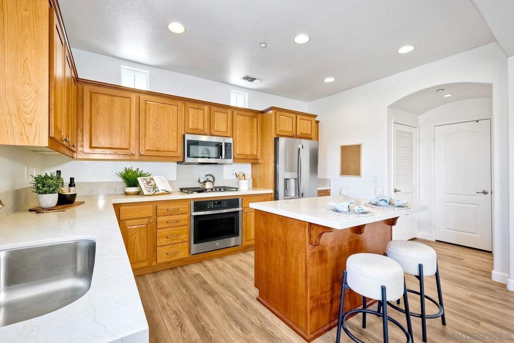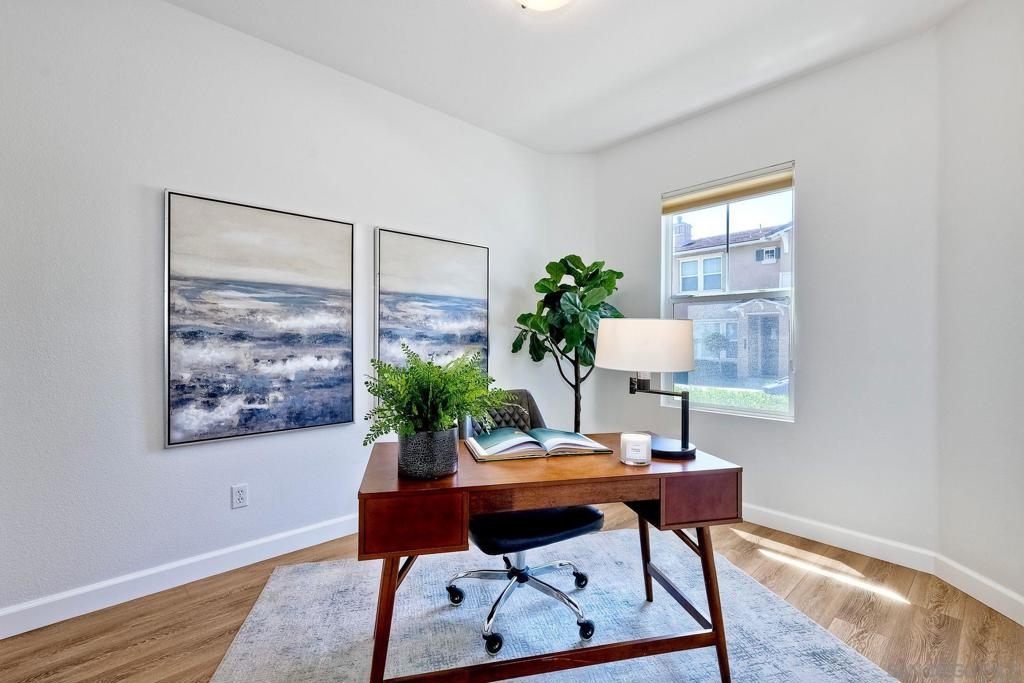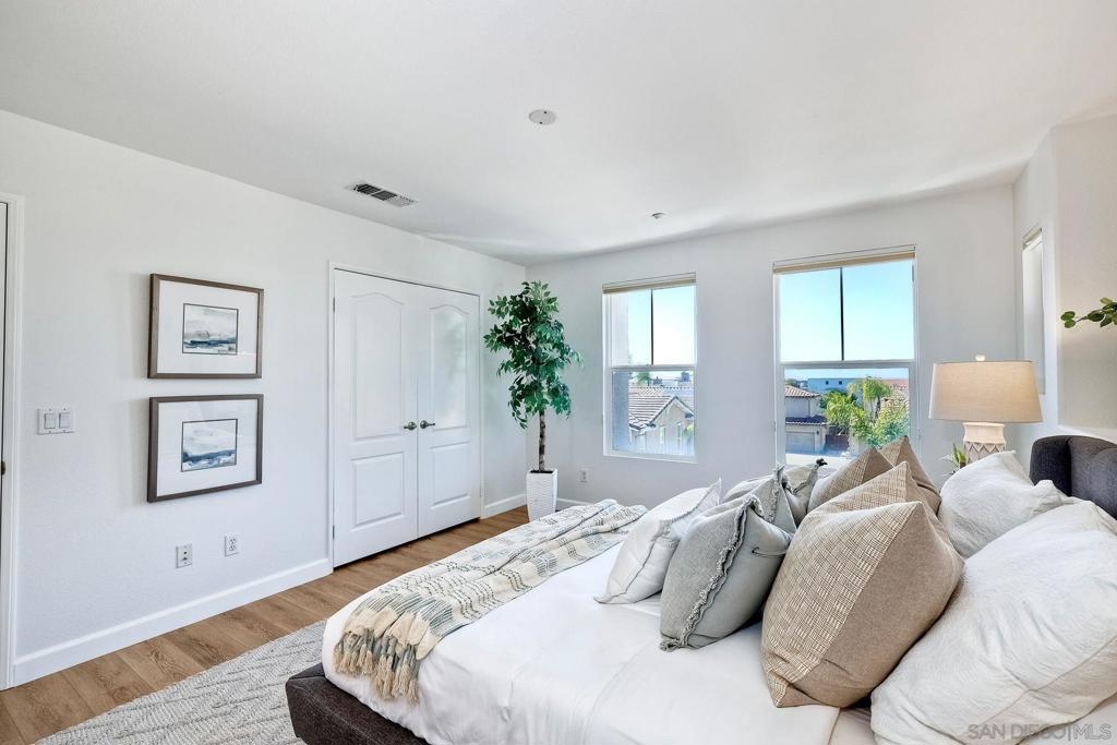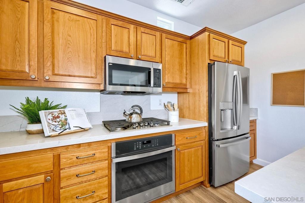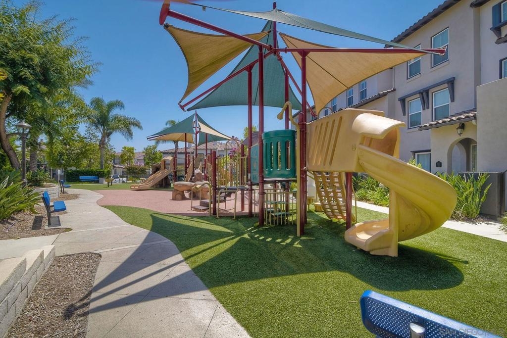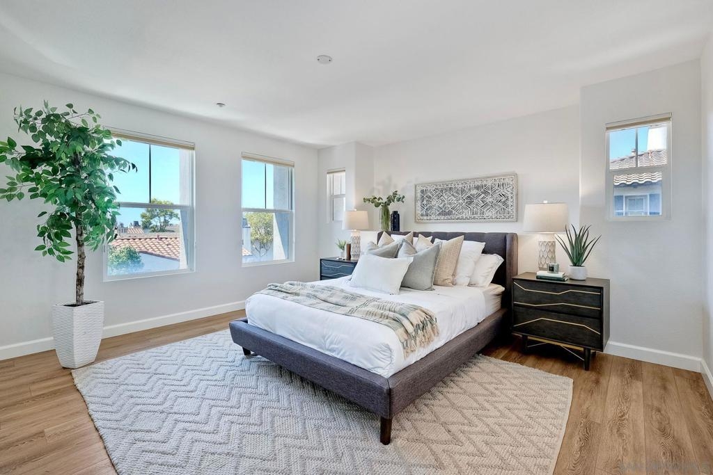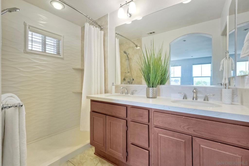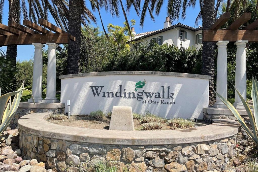 Stylish End-Unit Townhome in the Heart of Winding Walk. Welcome to this beautifully updated, 3-level, end-unit townhome in the highly desirable Agave & Saguaro community of Winding Walk. Thoughtfully designed and impeccably maintained, this home offers comfort, style, and a location that makes everyday living feel like a getaway. Step inside to find a versatile entry-level bedroom and full bathroom—ideal for guests, a private office, or multi-generational living. The attached two-car garage adds ease and convenience to your daily routine. The second floor is where this home truly shines—a spacious, open-concept living area filled with natural light. The kitchen has been recently refreshed with sleek quartz countertops, newly refaced cabinets, and brand-new stainless steel appliances. Whether you're hosting friends or enjoying a quiet evening in, the dining area and cozy living room with fireplace offer the perfect backdrop. Step out onto the balcony and savor the peaceful ambiance of this special end-unit location. Upstairs, you’ll find two more generously sized bedrooms, each with its own en-suite bathroom. The primary suite is a calming retreat, complete with ample closet space and soft, natural light. Throughout the home, brand-new honeycomb window blinds provide both beauty and energy efficiency, and the entire interior has been freshly painted within the past six months. As part of the Winding Walk community, you'll enjoy access to resort-style amenities including sparkling pools, relaxing spas, and BBQ areas perfect for weekend gatherings. The location is unbeatable—just a short stroll to Otay Ranch Town Center, where you’ll find coffee shops, restaurants, shopping, and entertainment all at your fingertips. This is more than just a townhome—it’s a lifestyle. Come experience the perfect blend of comfort, convenience, and community.