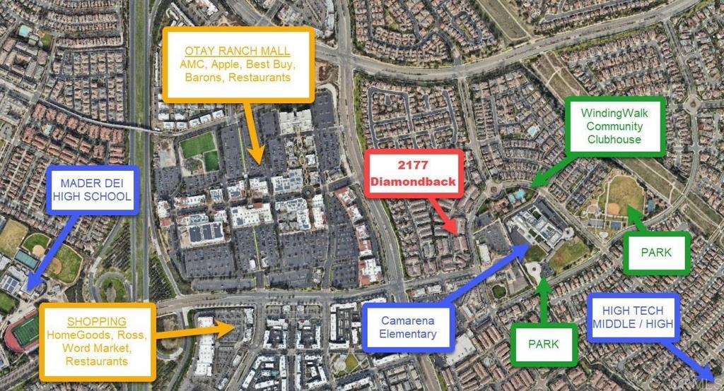 Discover modern living in this 3-bed, 2.5-bath, 2-story Townhome in Winding Walk, Eastlake. Built in 2006, this home features laminate flooring, plantation shutters, granite countertops, stainless steel appliances, ceiling fans, and upstairs laundry. With Mello-Roos possibly ending soon. Winding Walk, within the master-planned Eastlake community, offers pools, a spa, fitness center, playgrounds, and clubhouses hosting events. The HOA ensures a safe, walkable neighborhood. Nearby, Salt Creek Community Park (24 acres) has fields, courts, a skate area, playgrounds, and trails. Montevalle and Mountain Hawk Parks offer green spaces, with trails to Lower Otay Reservoir for hiking and boating. Served by top schools, Camarena Elementary excels in academics, Eastlake Middle emphasizes STEM, and Eastlake High, on a 45-acre campus with Chula Vista Community Park, supports 2,400+ students with strong programs. These schools rank high in the Chula Vista and Sweetwater districts. Steps from Otay Ranch Town Center and Eastlake Village Marketplace, enjoy dining and shopping. The U.S. Olympic Training Center and reservoir offer recreation, with SR-125 providing easy access to downtown Chula Vista (10 miles) and San Diego (20 miles). Schedule a showing today!