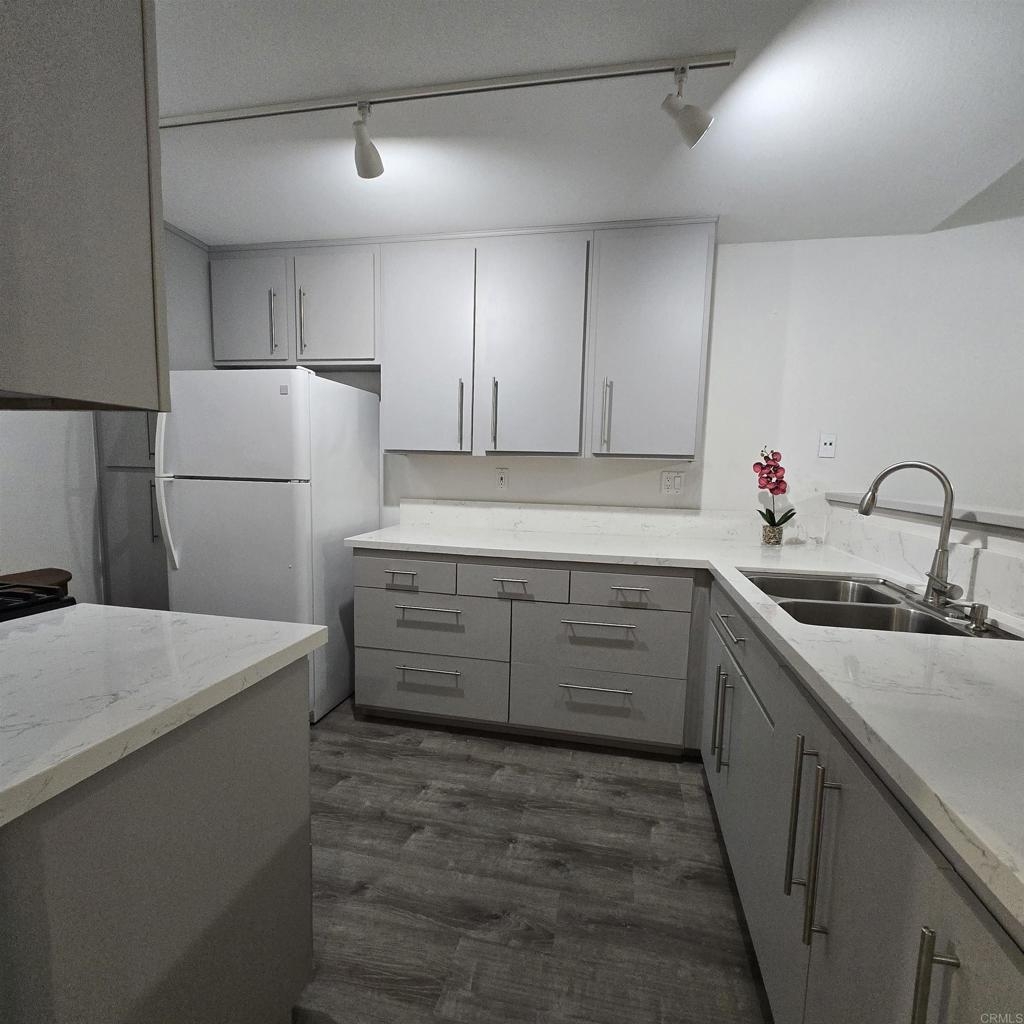 This is a must see beautiful end unit move-in ready, single level condominium on second floor with direct access to single car attached garage, renovated kitchen, energy efficient windows, lovely complex with pool and playground, close to shopping, near and easy freeways access.