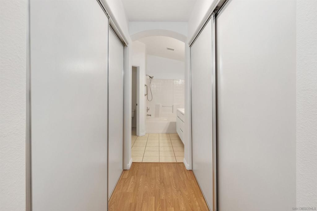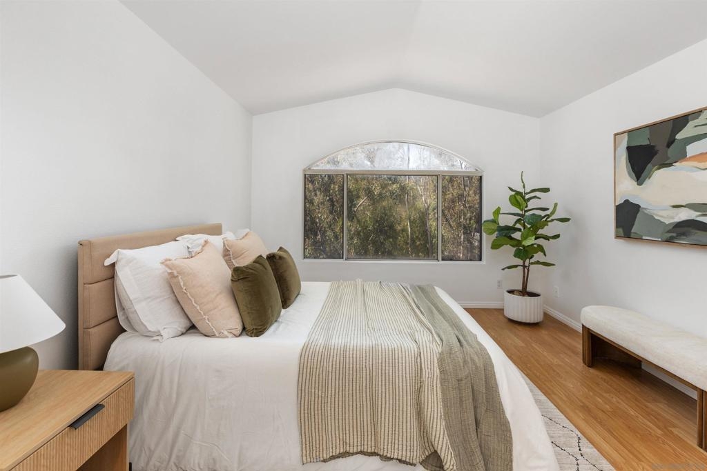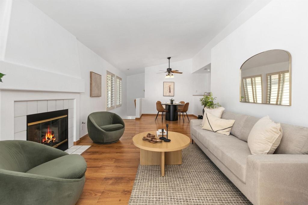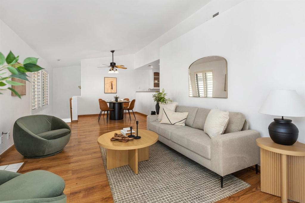 Beautiful 2-bed, 2-bath, 1,103 sq ft corner townhome in the desirable Sanibelle community of Chula Vista. This upstairs unit features fresh paint, wood-look laminate flooring, quartz countertops, and stainless-steel appliances. Enjoy community amenities including a pool, spa, and a small park with playground. Conveniently located just north of H St, near shopping, dining, and freeway access only 7.5 miles from the 32nd St. Naval Base. A fantastic opportunity to own in a well-maintained community!