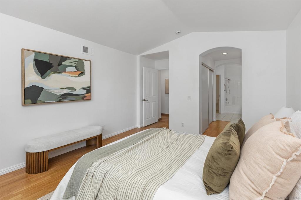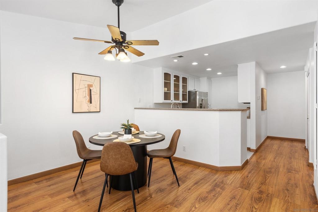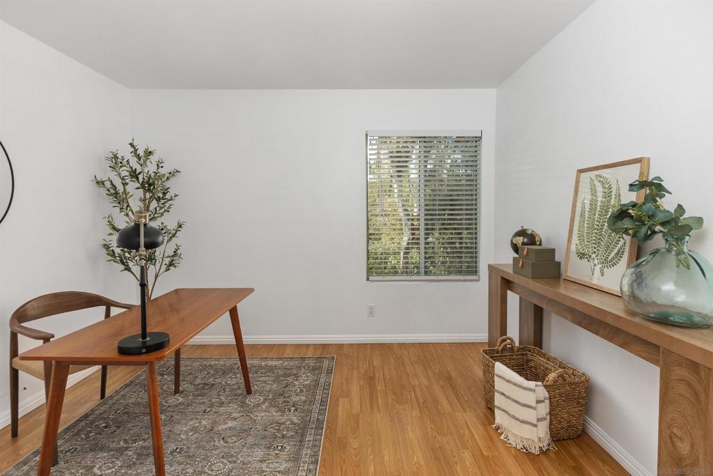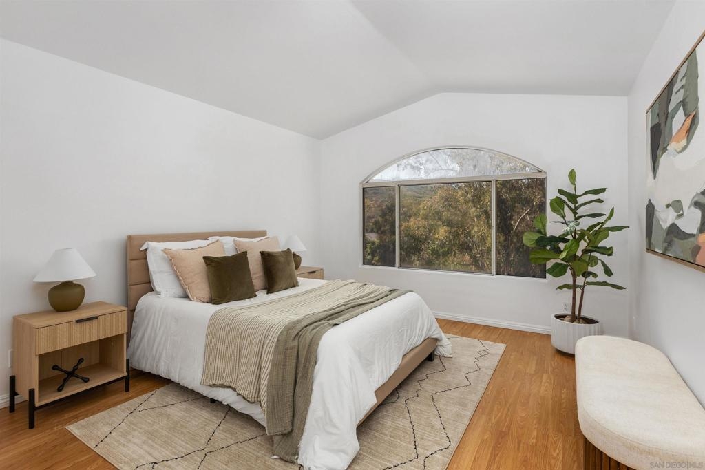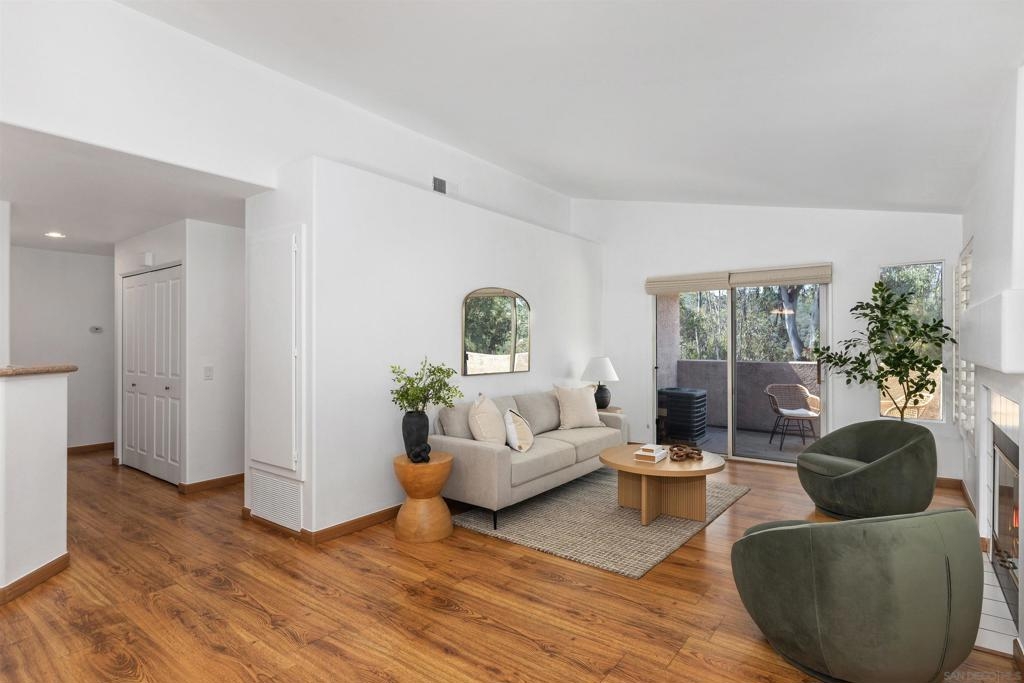 Beautiful 2-bed, 2-bath, 1,103 sq ft corner townhome in the desirable Sanibelle community of Chula Vista. This upstairs unit features fresh paint, wood-look laminate flooring, quartz countertops, and stainless-steel appliances. Enjoy community amenities including a pool, spa, and a small park with playground. Conveniently located just north of H St, near shopping, dining, and freeway access only 7.5 miles from the 32nd St. Naval Base. A fantastic opportunity to own in a well-maintained community!