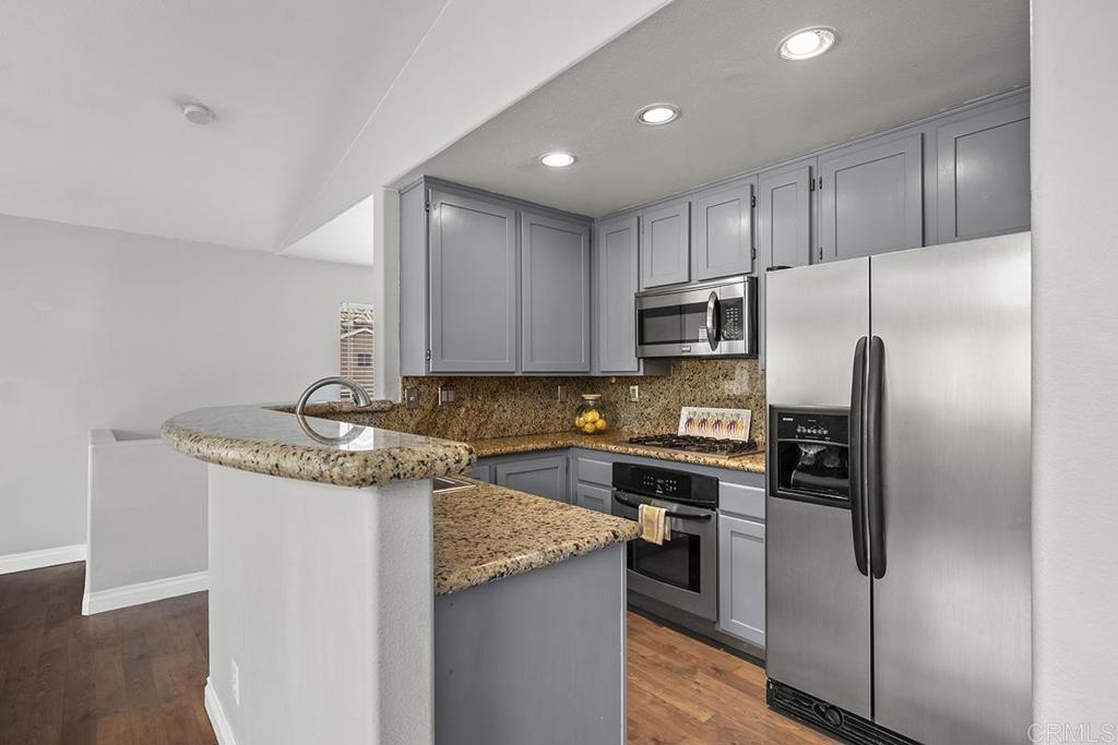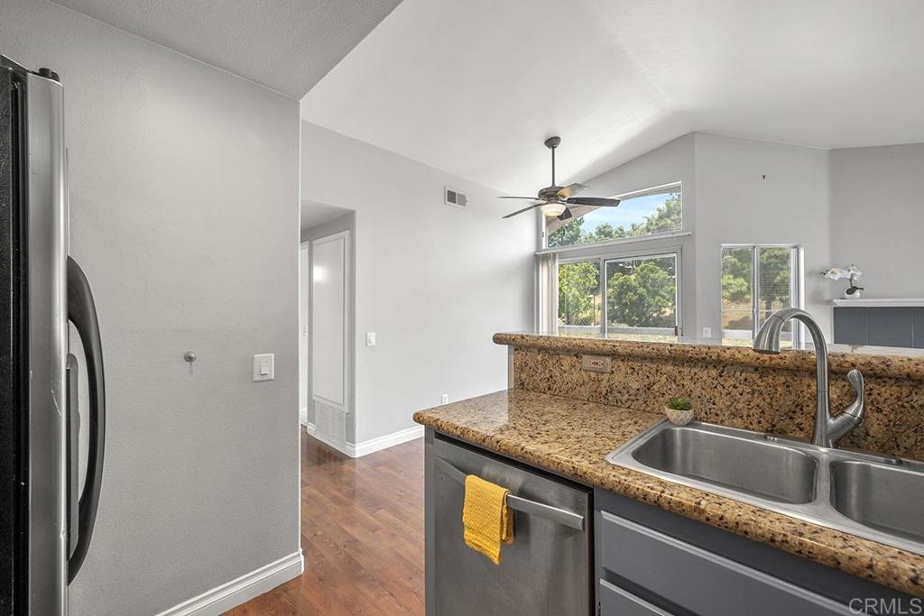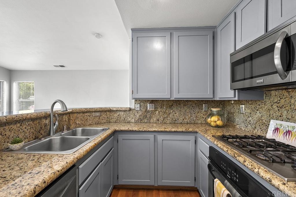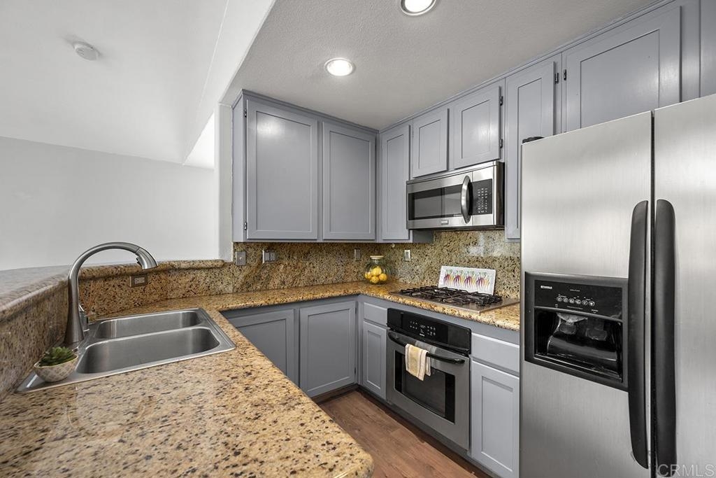 Nestled in a prime location, this bright and sunny 2-bedroom, 2-bathroom end unit offers a seamless blend of comfort and convenience. Step into the spacious living room/dining room combination boasting high ceilings and a cozy fireplace, perfect for relaxing evenings. The sliding glass door leads to your own private balcony, ideal for enjoying morning coffee or soaking in the sunset. The kitchen is open to the living area featuring granite countertops, a gas cooktop plus refrigerator included. Spacious primary suite with garden tub and walk in closet. Plus, the convenience of a washer and dryer right at your fingertips makes laundry day a breeze. With a one-car attached garage offering direct access and an extra exterior assigned parking space, parking is never a hassle. Enjoy the community pool/spa and children's playground. And with its convenient proximity to shopping, restaurants, and public transportation, everything you need is just steps away. Clear View Elementary School is within walking distance, while Terra Nova Park offers a serene escape just up the hill. Don't let this opportunity slip away – schedule your viewing today and make this your new home sweet home!