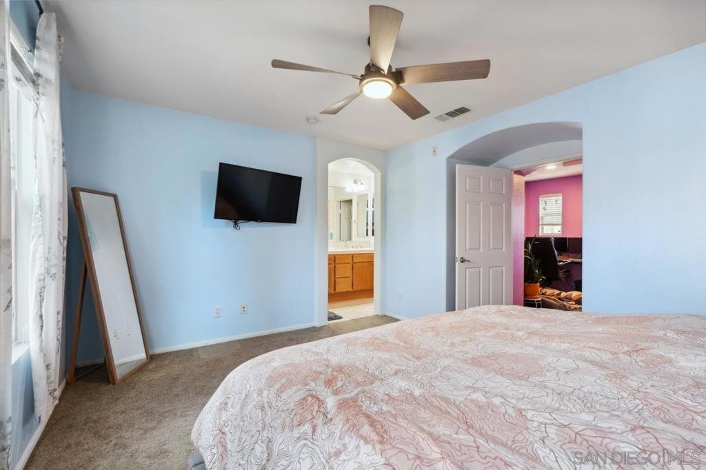 Welcome to this beautiful 2-bedroom, 2 and 1/2 bathrooms tri-level condominium in the desirable Rolling Hills Ranch. Located in the Sedona’s neighborhood, this home is designed with modern living in mind, featuring PAID OFF TESLA SOLAR system with battery bank, offering the perfect combination of comfort, sustainability, and convenience. The expansive primary bedroom is a true retreat, designed for ultimate relaxation, while the spacious secondary bedroom, located on the lower level, with its own private bathroom provides both convenience and privacy for family members or guests. You’ll also find an additional versatile space that’s perfect for a home office, studio, art and crafts area, or whatever suits your needs! Step outside onto one of the two private balconies, where you can enjoy the great Southern California weather year-round. The home also includes indoor laundry, a 2-car garage, and an additional assigned parking space, making it ideal for your lifestyle. This unit is equipped with a water purification system, newer washer and dryer, A/C unit and furnace (replaced in 2021), ensuring your home is comfortable and efficient in every season. The location is unbeatable! Only 20 minutes from downtown San Diego, close to shopping, dining, entertainment, walking trails and 2 dog parks offering endless options for outdoor recreation. This home offers everything you need: a great neighborhood, modern amenities, and an eco-friendly, energy-efficient home with NO MELLO ROOS. Don’t miss your chance to make this property your own!