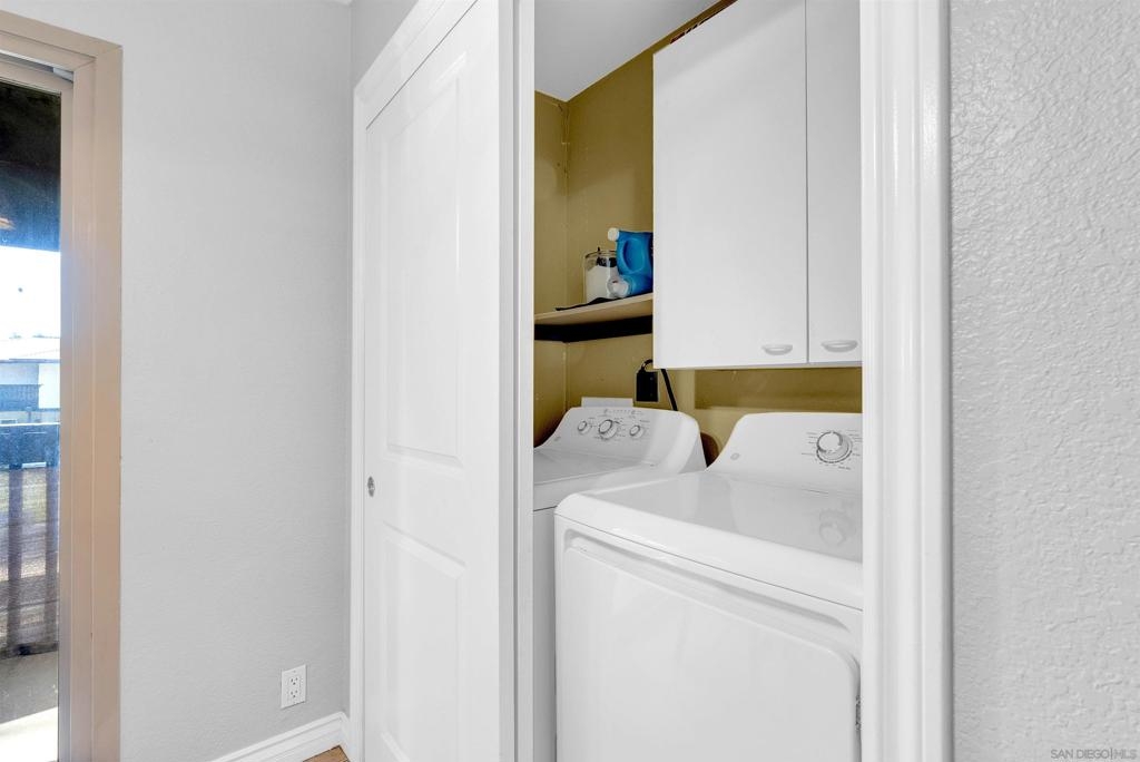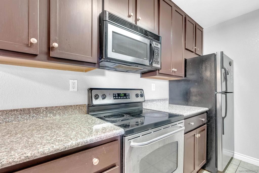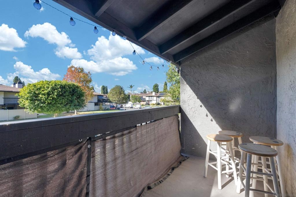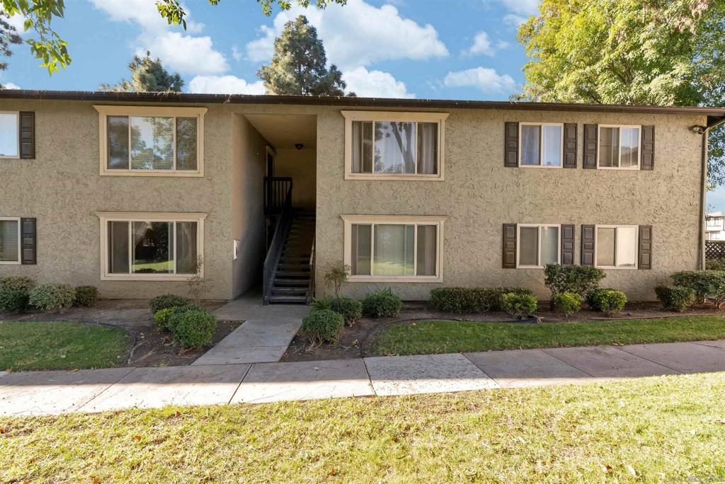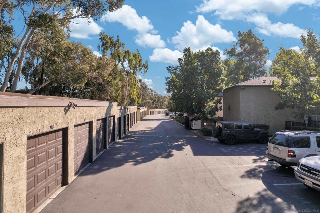 Don't miss out on this exceptional opportunity to own this upstairs unit that has TWO bedroom / ONE bathroom condo boasting TWO single car garages, AND an additional designated parking space! The expansive living area presents enchanting panoramas of the nearby scenery and towering eucalyptus trees, complemented by crown molding. Benefit from the upgraded features such as dual-pane windows for energy efficiency. The updated kitchen showcases stunning earth-tone granite countertops. Appliances, including a range, microwave, dishwasher, and washer/dryer, are included for your convenience. Relax in the large primary bedroom, complete with a walk-in closet. The spacious bathroom features large vanity area. As an added bonus, the HOA covers essential services such as water and trash. Conveniently situated near the 805 freeway, this property is a must-see for those seeking a harmonious blend of comfort and style. Don't let this rare gem slip through your fingers—schedule your viewing today!