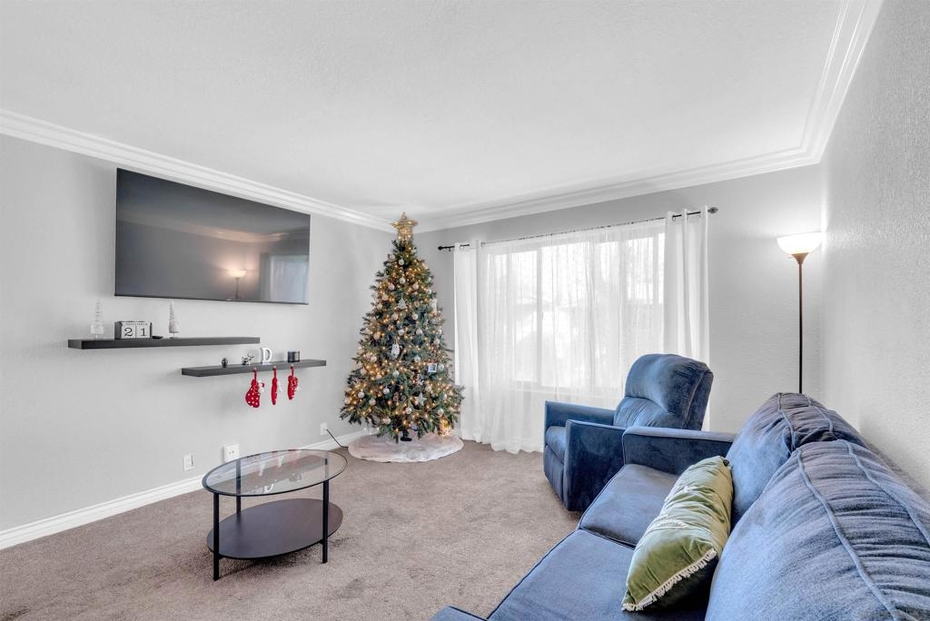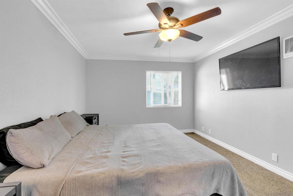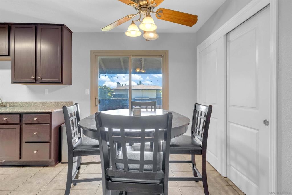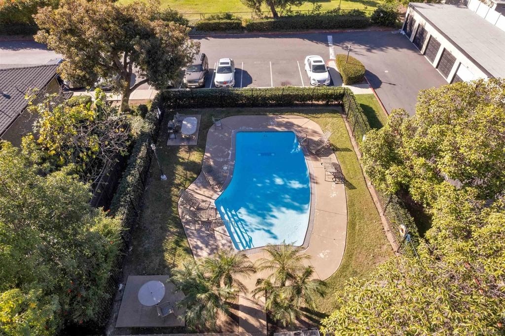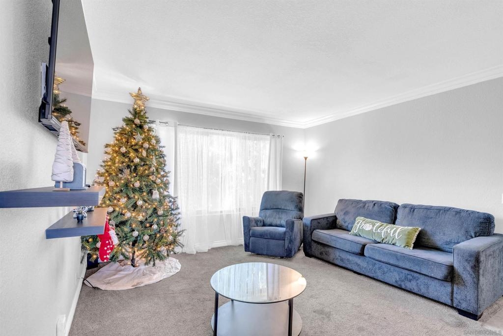 Don't miss out on this exceptional opportunity to own this upstairs unit that has TWO bedroom / ONE bathroom condo boasting TWO single car garages, AND an additional designated parking space! The expansive living area presents enchanting panoramas of the nearby scenery and towering eucalyptus trees, complemented by crown molding. Benefit from the upgraded features such as dual-pane windows for energy efficiency. The updated kitchen showcases stunning earth-tone granite countertops. Appliances, including a range, microwave, dishwasher, and washer/dryer, are included for your convenience. Relax in the large primary bedroom, complete with a walk-in closet. The spacious bathroom features large vanity area. As an added bonus, the HOA covers essential services such as water and trash. Conveniently situated near the 805 freeway, this property is a must-see for those seeking a harmonious blend of comfort and style. Don't let this rare gem slip through your fingers—schedule your viewing today!