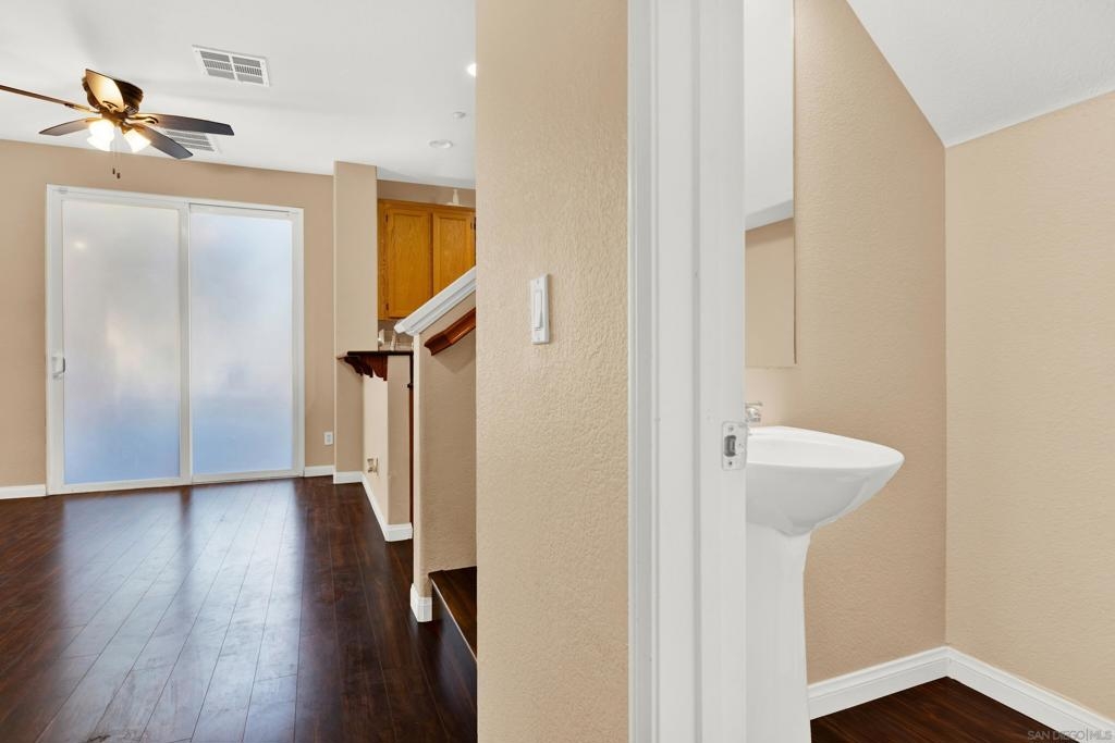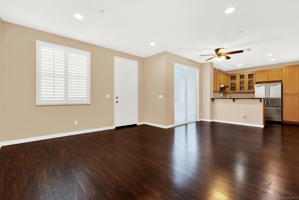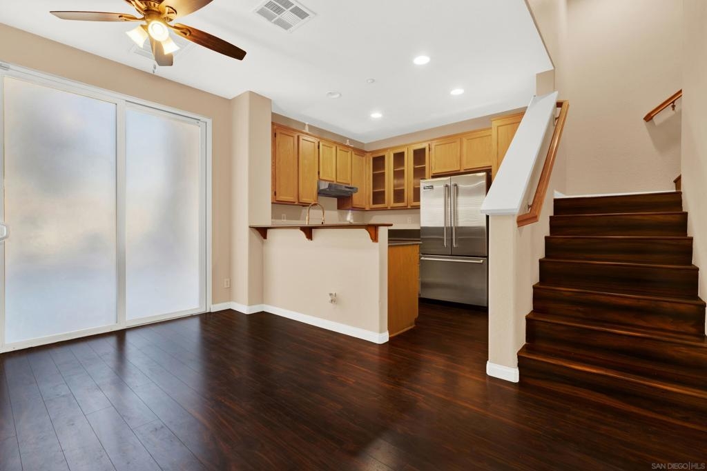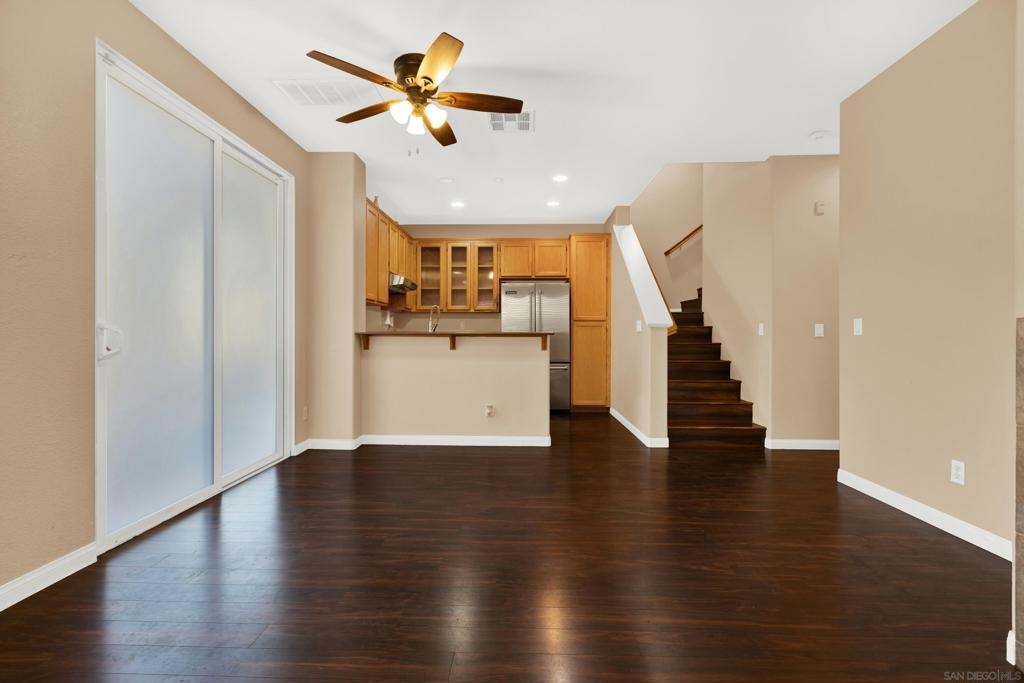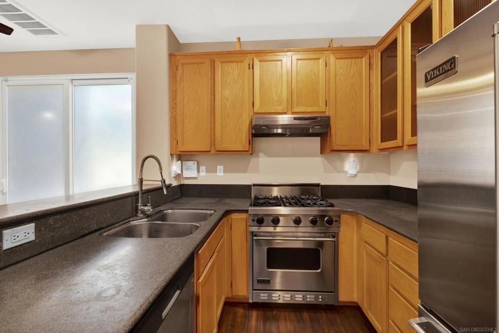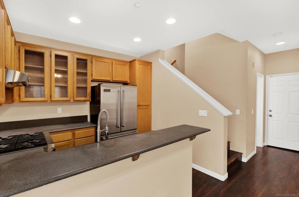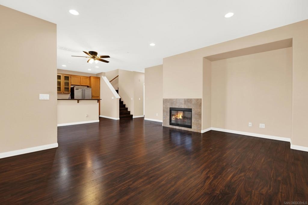 Priced to sell home in desirable Hearthstone Village. This tri-level features beautiful wood flooring throughout, as well upgraded kitchen with corian countertops and stainless steel appliances. There is a fireplace in the living room with convenient full sized laundry on the 2nd floor. With ample windows, this unit shows light and bright. Besides the front porch you will have a tiled balcony to enjoy. The location is very convenient to freeways, shopping, parks, dining, and top-rated schools.