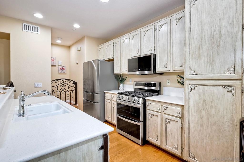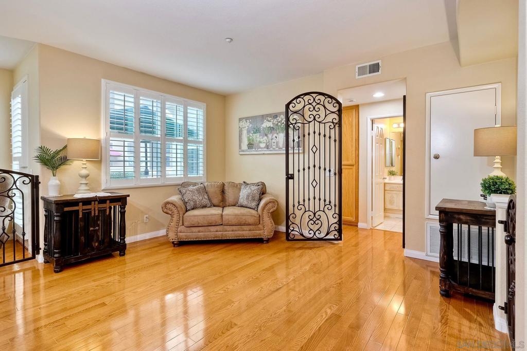 VA APPROVED! Bright 3-Story CORNER Unit! Beautifully Maintained with ENGINEERED HARDWOOD Floors and PLANTATION SHUTTERS Throughout! Enjoy Natural Light in this SPACIOUS LAYOUT with a BREEZY BALCONY, Perfect for Relaxing! Kitchen w/CORIAN COUNTERTOPS and Living Area Flow Seamlessly! Spacious Primary Suite offers a WALK-IN CLOSET and a Standard Closet. TONS OF STORAGE Space! Direct Entry from ATTACHED 1-Car Garage and a Second Designated Parking Space! Complex offers Multiple Pools and is Located Near SHOPPING, GROCERIES, and PUBLIC TRANSPORTATION!