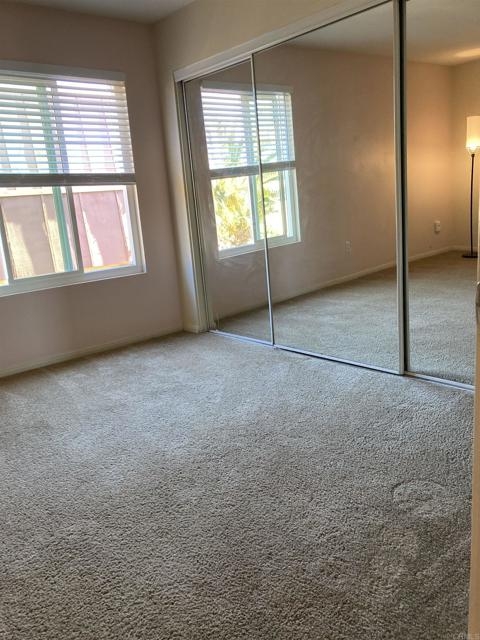 Spacious split-level condo. Open living room, dining space, with 1/2 bath. Good size Patio for BBQ. Upper level has full Jack & Jill bathroom. 2 spacious bedrooms with mirrored closet doors. There is also a Bonus 3rd mirror closet in the hallway. A separate space for stackable washer & dryer hookup. New double paned windows replaced in 2022. HOA includes water-sewer and Trash. Two assigned parking spaces within Community area. HOA amenities include pool and Community Laundry room. You can enjoy the sunset from the Primary bedroom!