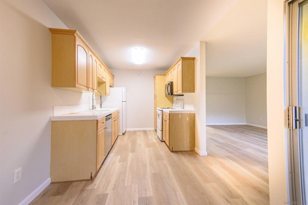 Cute one-story ground-level condo with vinyl flooring throughout. Features a cozy patio and updated bathrooms with new sinks and quartz countertops. Each bedroom has a ceiling fan. The unit includes two assigned parking spaces and an additional 9'x4' storage area.