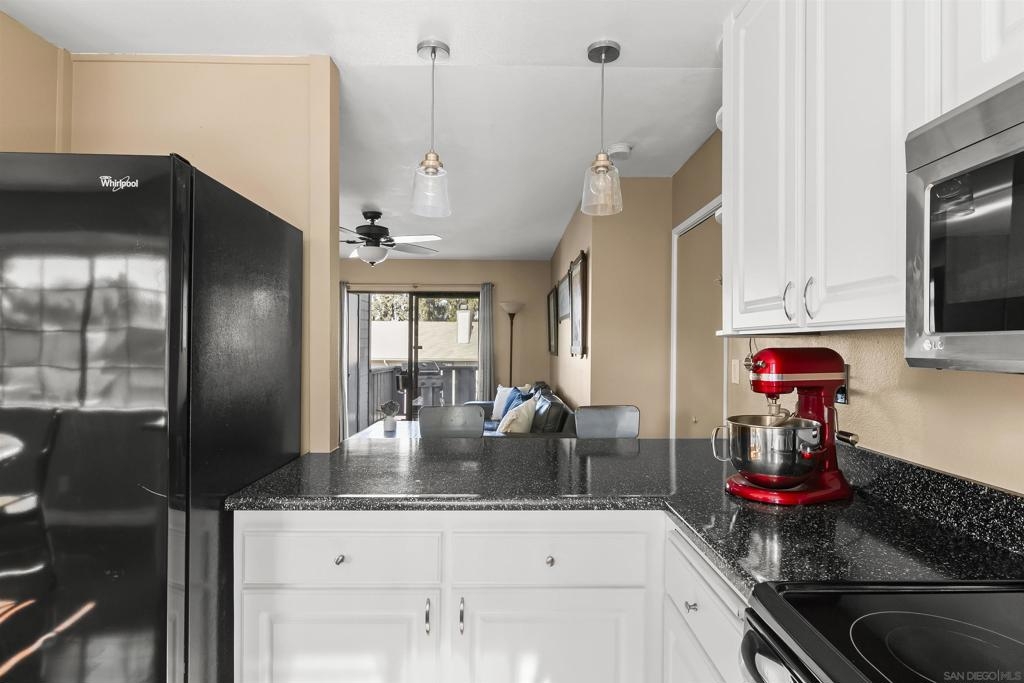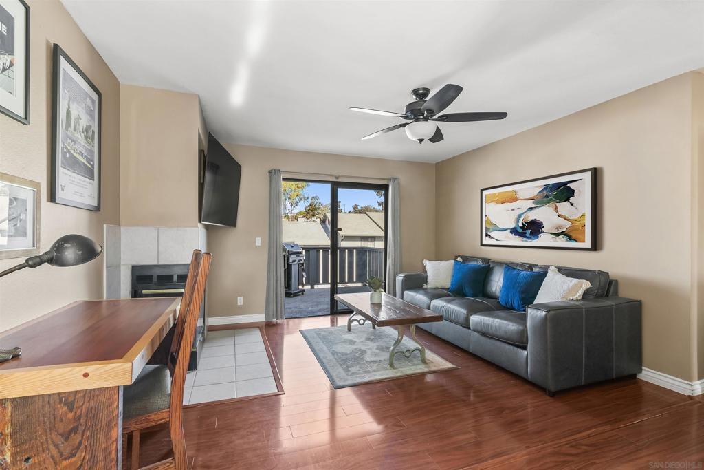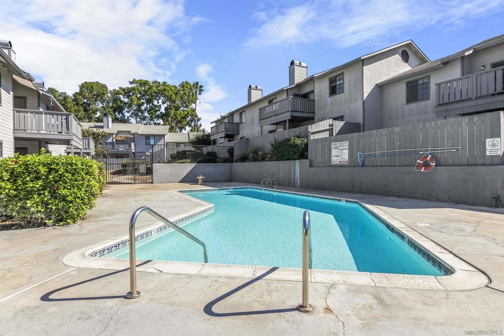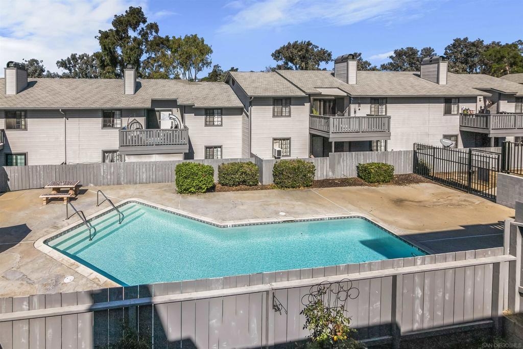 Welcome to 215 Camlau Dr #D, a renovated condo in the sought-after Summerwind community of Chula Vista. In 2020, this unit was updated with kitchen appliances, new flooring, and baseboards, giving it a fresh and contemporary look. In the living room, a wood-burning fireplace provides a cozy ambiance. A large sliding glass door leads to a sizable balcony off where you have open views overlooking the community pool, offering a relaxing retreat and space to grill. The south-facing windowed kitchen is brightly lit and well appointed with appliances by Whirlpool, LG, and Frigidaire. There is ample cabinet space, and it features an open layout and breakfast bar, facilitating easy meal preparation and entertaining. This condo features a split-two bedroom design, with each bedroom and bathroom located on opposite sides of the home. Bedroom windows face to the north and provide open views of the community. For parking convenience, this home includes two spaces - a one-car detached garage and a separate assigned outdoor parking space. The building is VA financing approved. Situated in the desirable Summerwind community, you'll appreciate the spaciousness of the condos in this development. The HOA includes water, trash, parking, and access to the common area amenities. Enjoy proximity to highly-rated Hilltop Park and Trail for outdoor gatherings and hiking, major shopping centers such as the Chula Vista Center, outstanding dining options, and easy access to major freeways for convenient commuting throughout San Diego County.