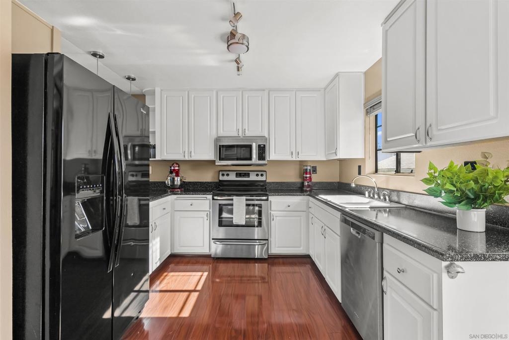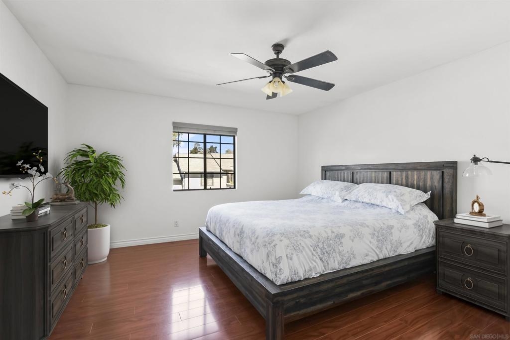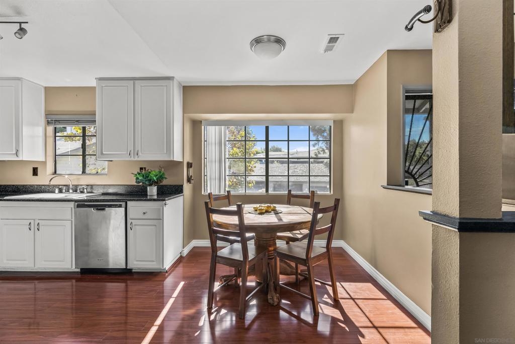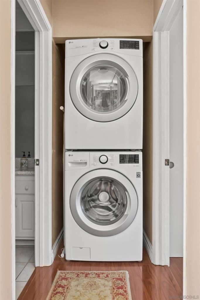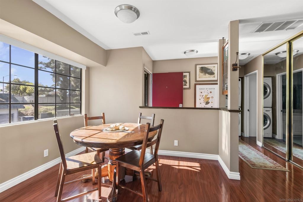 Welcome to 215 Camlau Dr #D, a renovated condo in the sought-after Summerwind community of Chula Vista. In 2020, this unit was updated with kitchen appliances, new flooring, and baseboards, giving it a fresh and contemporary look. In the living room, a wood-burning fireplace provides a cozy ambiance. A large sliding glass door leads to a sizable balcony off where you have open views overlooking the community pool, offering a relaxing retreat and space to grill. The south-facing windowed kitchen is brightly lit and well appointed with appliances by Whirlpool, LG, and Frigidaire. There is ample cabinet space, and it features an open layout and breakfast bar, facilitating easy meal preparation and entertaining. This condo features a split-two bedroom design, with each bedroom and bathroom located on opposite sides of the home. Bedroom windows face to the north and provide open views of the community. For parking convenience, this home includes two spaces - a one-car detached garage and a separate assigned outdoor parking space. The building is VA financing approved. Situated in the desirable Summerwind community, you'll appreciate the spaciousness of the condos in this development. The HOA includes water, trash, parking, and access to the common area amenities. Enjoy proximity to highly-rated Hilltop Park and Trail for outdoor gatherings and hiking, major shopping centers such as the Chula Vista Center, outstanding dining options, and easy access to major freeways for convenient commuting throughout San Diego County.