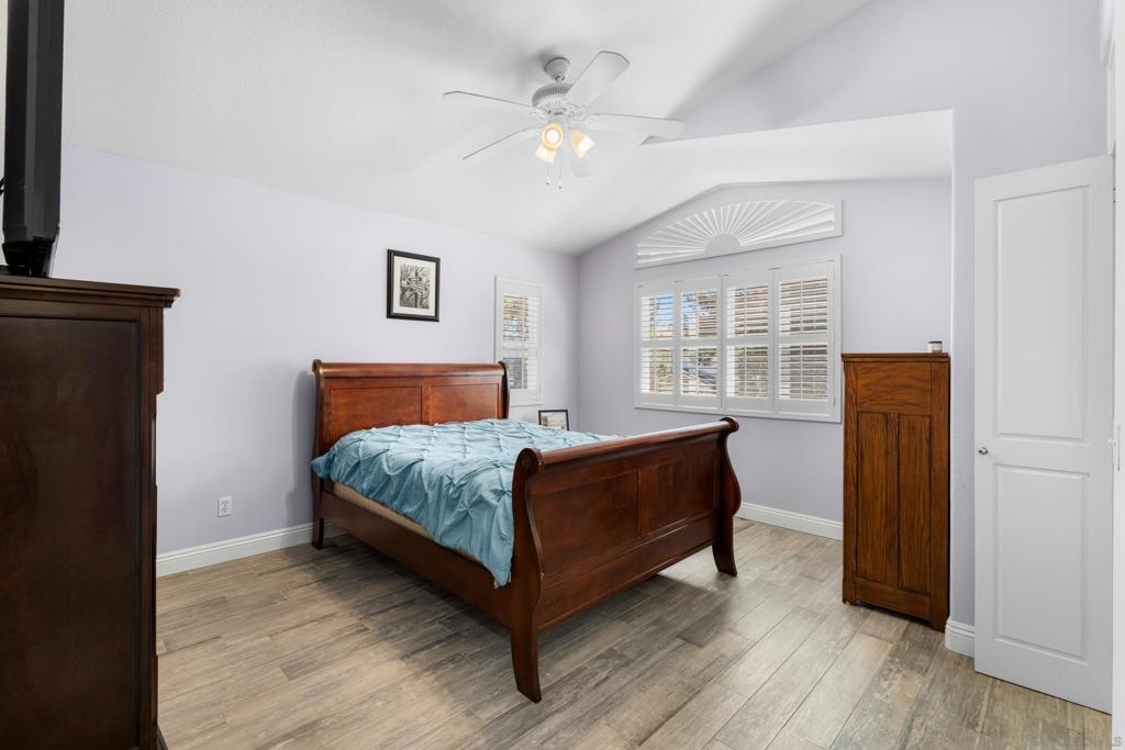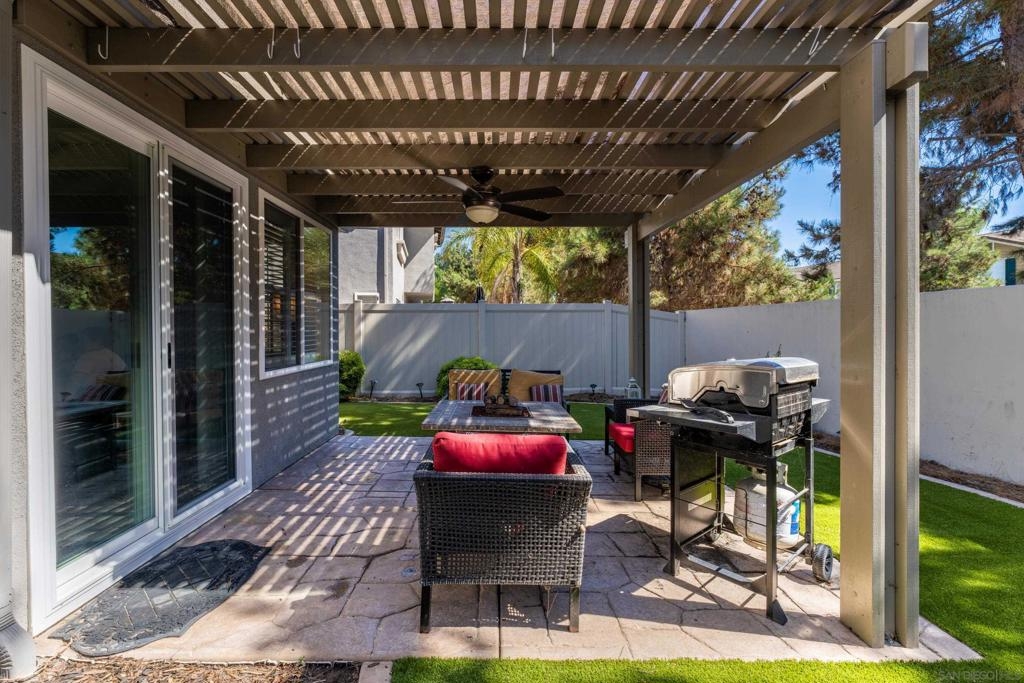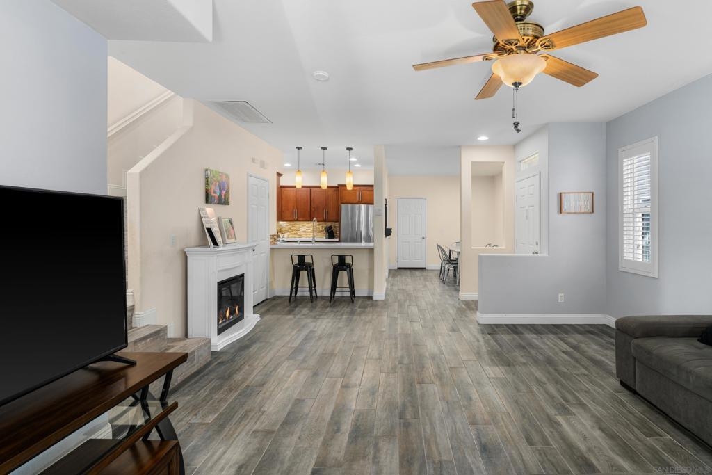 Discover this stunning 3-bedroom, 2.5-bath end-unit townhome in the sought-after gated community of Sycamore Ridge. As the largest floor plan in the neighborhood, this residence offers both space and style. Step inside to find an open-concept design with 9-foot ceilings, abundant natural light, and elegant custom wood-look porcelain tile throughout. The modern kitchen boasts a sleek single-slab quartz countertop, striking custom tile backsplash, rich wood cabinetry, gas range, and stainless steel appliances. The living room features a fireplace, perfect for creating a cozy ambiance on cool nights. Upstairs, you'll find a spacious master suite with vaulted ceilings, a luxurious master bath with dual sinks and a custom walk-in shower, and an impressive walk-in closet. A versatile loft provides additional storage space. Modern conveniences include dual-pane windows, plantation shutters, recessed lighting, efficient forced air conditioning, and laundry hookups located in the garage. Entertain in style on the expansive private covered patio, featuring luxury turf, retractable shades, and a cooling fan. The community features a large park with a playground and basketball courts, while Eastlake III offers two pools, a Jacuzzi, and a clubhouse. Enjoy proximity to the highly-rated schools, nearby restaurants, shopping, and scenic trails. With low HOA fees, this townhome balances luxury with practicality, making it truly a gem in a prime location!