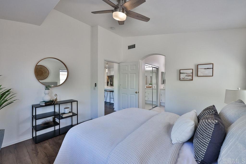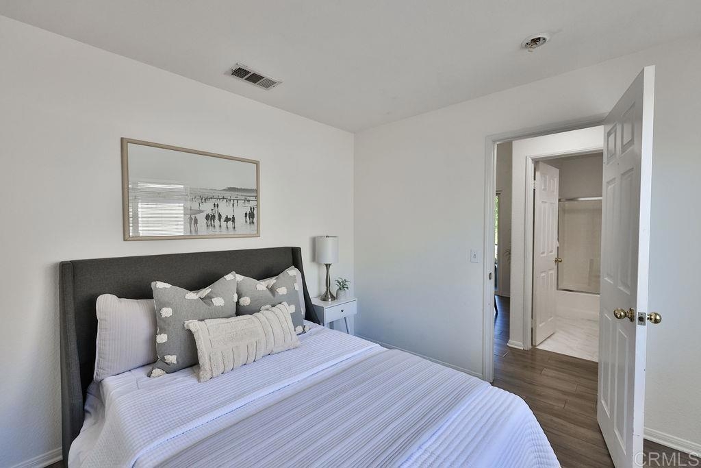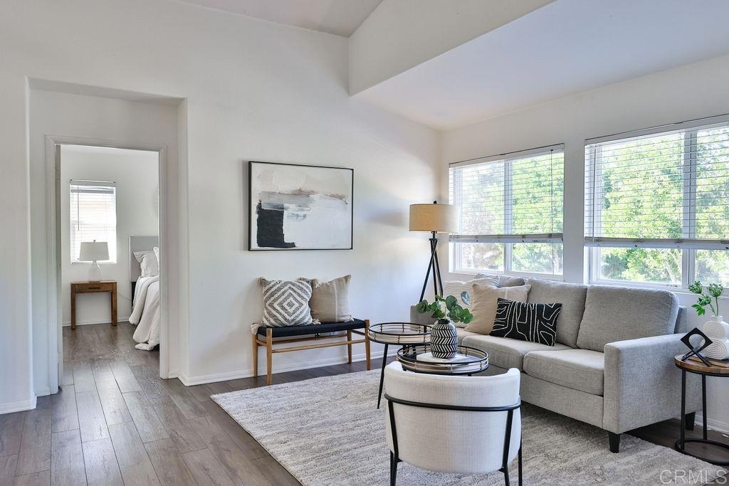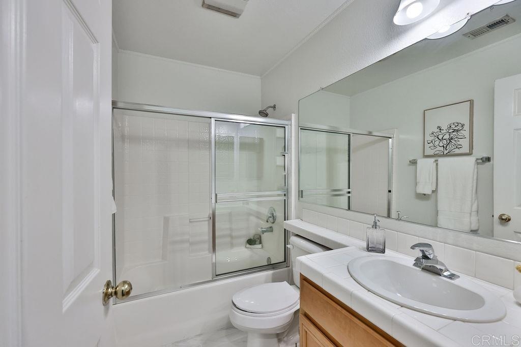 Welcome to the gated community of Sycamore Ridge located in Eastlake Trails. This 2 bedroom, 2 bathroom townhome style condo is turn key & ready for its new owner. It is also VA and FHA approved! The layout is ideal! You walk into the house & go straight upstairs. Once upstairs, all living space is on a single level with a bedroom & full bathroom on each side of the unit providing maximum privacy for each! There is no unit below or above! The vaulted ceilings & abundant natural light make the space feel open & bright. The light paint colors, solid surface flooring throughout, quartz countertops & designer black splash in the kitchen give the home a custom look. In addition to looking great, this property has all the comfort & convenience features buyers are looking for such as, central heating & air conditioning, an attached garage & a washer/dryer dedicated to the unit. In addition to the 1 car garage, the unit comes with a dedicated parking space and a guest parking pass. The location of this community is ideal. With easy freeway access, walking distance to a park and recreation area and access to multiple pools, tennis courts and basketball courts. But wait...there's more! This property has a low HOA and very low Mello Roos. Even better, the Mello Roos is set to expire in Tax year 2028/2029! This one will go quickly.