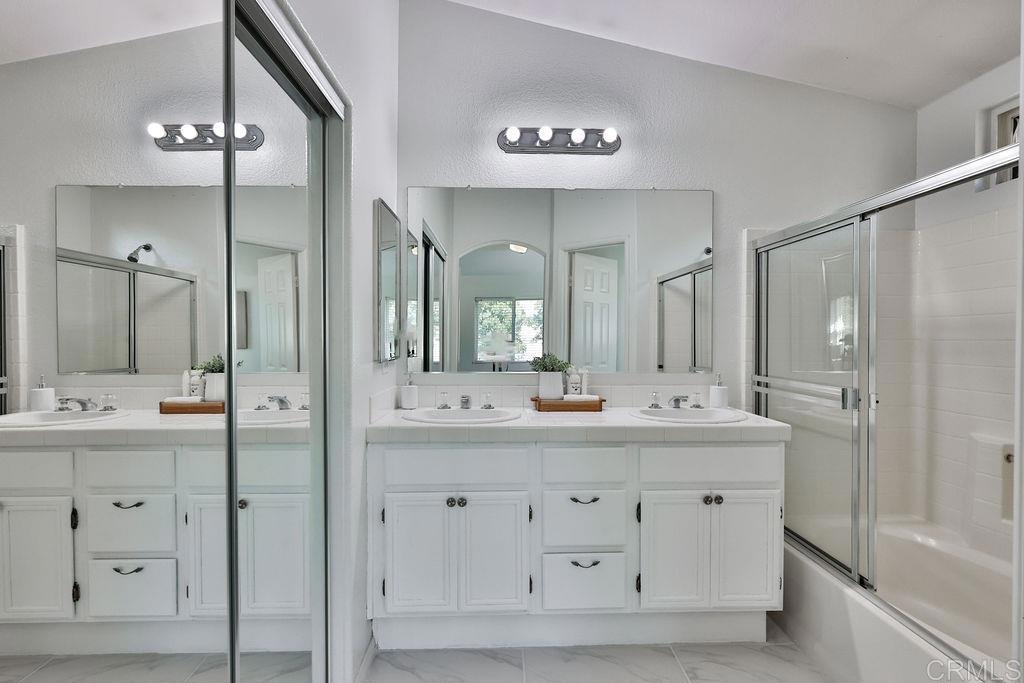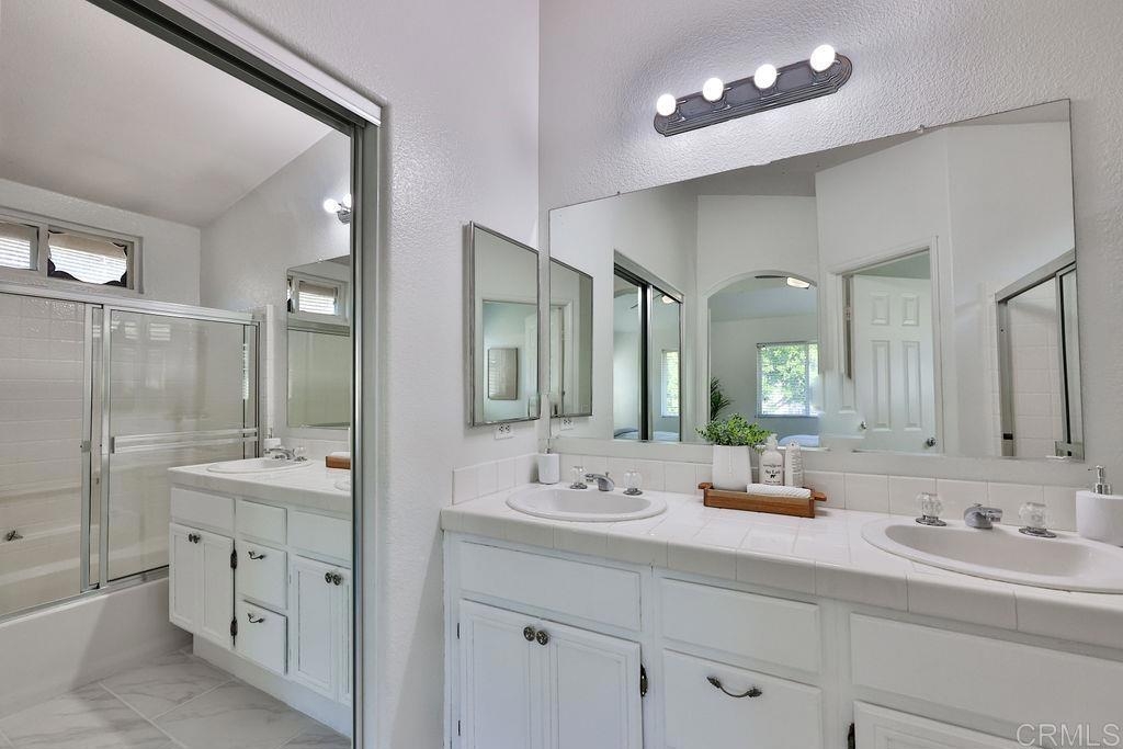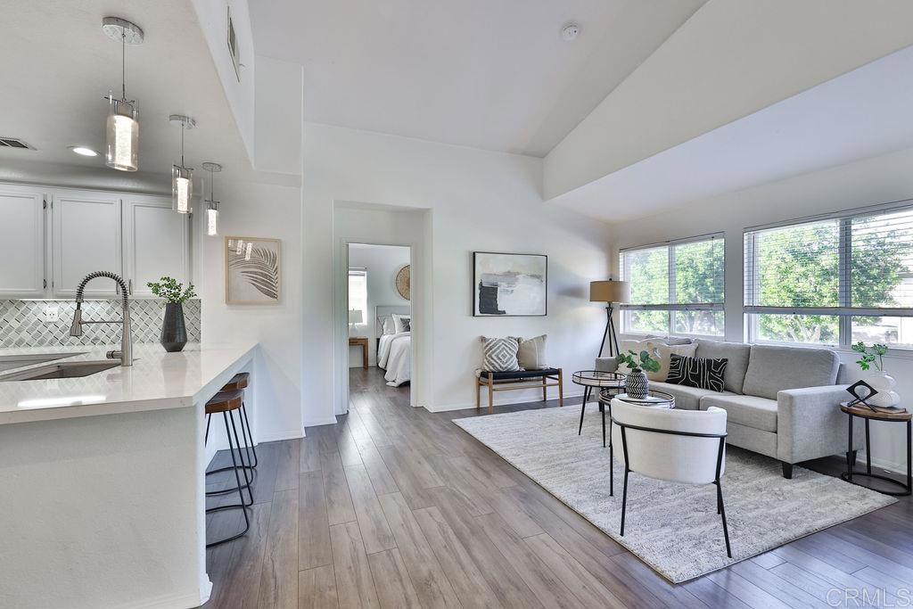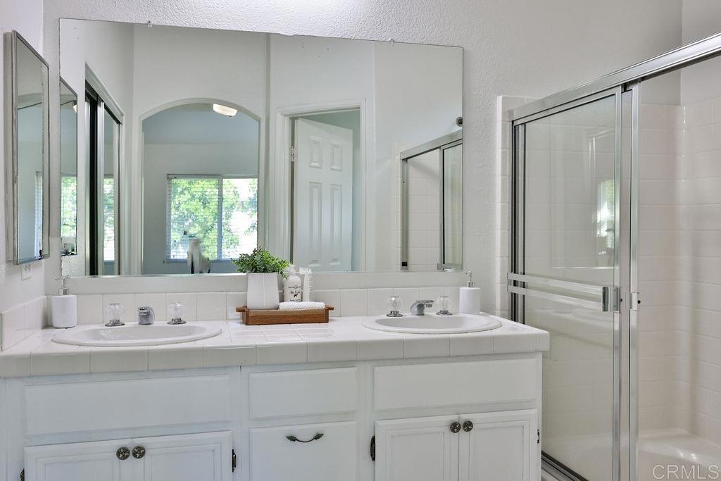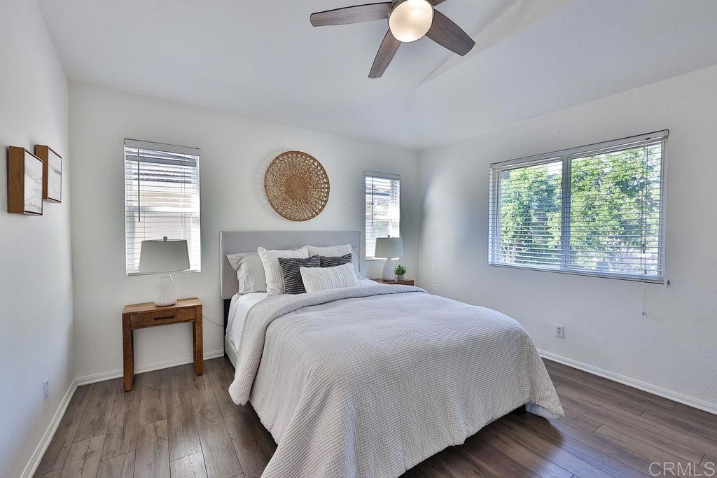 Welcome to the gated community of Sycamore Ridge located in Eastlake Trails. This 2 bedroom, 2 bathroom townhome style condo is turn key & ready for its new owner. It is also VA and FHA approved! The layout is ideal! You walk into the house & go straight upstairs. Once upstairs, all living space is on a single level with a bedroom & full bathroom on each side of the unit providing maximum privacy for each! There is no unit below or above! The vaulted ceilings & abundant natural light make the space feel open & bright. The light paint colors, solid surface flooring throughout, quartz countertops & designer black splash in the kitchen give the home a custom look. In addition to looking great, this property has all the comfort & convenience features buyers are looking for such as, central heating & air conditioning, an attached garage & a washer/dryer dedicated to the unit. In addition to the 1 car garage, the unit comes with a dedicated parking space and a guest parking pass. The location of this community is ideal. With easy freeway access, walking distance to a park and recreation area and access to multiple pools, tennis courts and basketball courts. But wait...there's more! This property has a low HOA and very low Mello Roos. Even better, the Mello Roos is set to expire in Tax year 2028/2029! This one will go quickly.