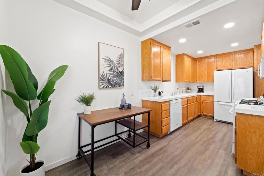 Welcome to your dream home in beautiful Rancho Del Rey! This beautiful 2-bedroom, 2.5-bath residence boasts an open-concept design with high ceilings, creating a bright and airy living space. Perched over the serene Kumeyaay Park, this home offers unparalleled views and a perfect blend of luxury and nature. The spacious open floor plan seamlessly connects the living, dining, and kitchen areas, ideal for both everyday living and entertaining. Tall ceilings enhance the sense of space and light, providing a grand and inviting atmosphere. Make laundry days a breeze by having the comfort of the washer and dryer closet upstairs next to the bedrooms. Your dream home is located close to the 805 and main roads throughout Chula Vista. Rancho Del Rey is known for having highly rated schools. This home is a true gem, offering a luxurious lifestyle with the tranquility of nature just outside your door. Don't miss this opportunity to make it yours.