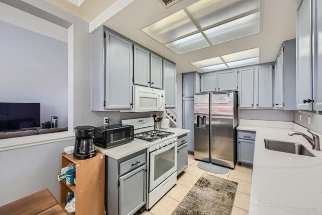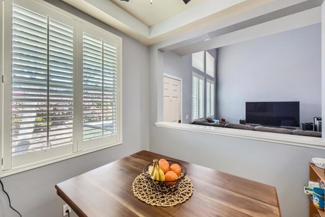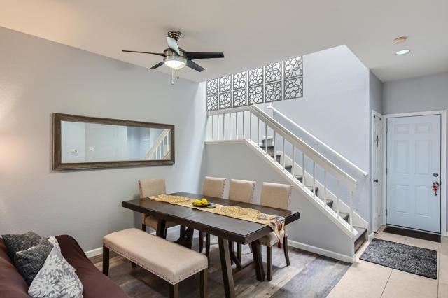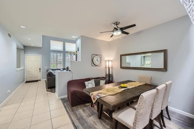 Rarely on the market in the Tiara complex, this 2-bedroom, 2.5-bathroom property in Rancho Del Rey is a rare find. This home boasts no Mello-Roos and an attached 2-car garage, offering convenience and value. Upon entering, you are greeted by the living room featuring a cozy fireplace and high ceilings, creating a welcoming ambiance. The kitchen is adorned with quartz countertops and offers an open concept feel, perfect for entertaining guests. Directly across from the kitchen, you'll find a formal dining area, ideal for hosting dinner parties. Additionally, a convenient half-bath is located just around the corner. As you make your way upstairs, you'll notice a skylight that fills the space with natural light. Here, you'll find a laundry closet for added convenience and two bedrooms, each with its own en-suite bathroom, with the primary bedroom featuring a walk-in closet. The Tiara complex offers a community pool and spa for residents to enjoy, and the HOA covers water and trash, adding to the convenience of living here. Located in a prime location, this home is just a short distance away from Southwestern College, Bonita Vista High School, Bonita Vista Middle School, shopping centers, parks, and golf courses. Don't miss out on this opportunity to own a piece of paradise in Rancho Del Rey.