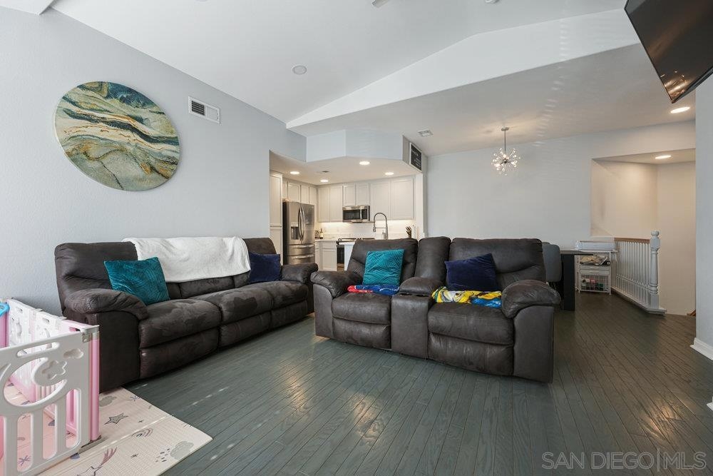 Welcome to this beautifully remodeled townhouse in the exclusive gated community of Tivoli Villas in Sunbow..VA/FHA Approved! This home offers modern living space with stylish upgrades throughout. The bright and open floor plan features stunning hardwood floors, fresh paint, and a contemporary kitchen with sleek quartz countertops, modern cabinetry, and stainless steel appliances. The spacious living area extends to a private balcony, perfect for enjoying morning coffee or unwinding in the evening. Both bathrooms have been tastefully updated with elegant vanities and fixtures. Enjoy the convenience of an attached 1-car garage, in-unit laundry, and access to the community’s resort-style amenities, including a sparkling pool and spa. Located within walking distance to Sharp Medical Center, shopping, dining, and public transportation, with easy access to I-805, this home offers the perfect blend of comfort, convenience, and style. With low HOA and Mello-Roos fees, this is an incredible opportunity to own in one of Chula Vista’s most desirable neighborhoods.