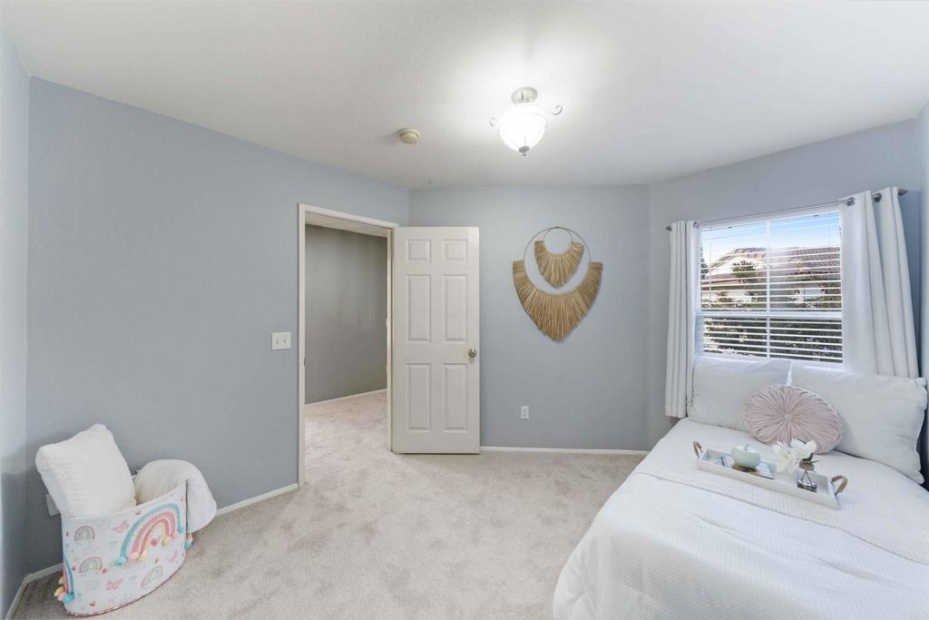Fantastic Otay Ranch townhouse, offering a rare opportunity as a 4-bedroom townhouse with a spacious backyard and scenic views. This 4-bedroom, 3.5-bathroom home has 1,670 sq. ft. and includes an attached two-car garage and only one shared wall. The modern kitchen is equipped with stainless steel appliances, laminate wood flooring, and a charming breakfast nook. The second floor has new carpet throughout the hallways and bedrooms and features a dedicated laundry room for added convenience. The primary suite offers a private balcony with scenic community views, while the highlight of this property is the large backyard—perfect for outdoor entertaining, play, or simply unwinding with no rear neighbors. Conveniently situated across from McMillin Elementary, Calvary Christian Academy, and Cottonwood Community Park, this prime location offers easy access to E. Palomar shops and services. Otay Ranch is known for its top-rated schools, numerous parks, and the Otay Ranch Town Center with excellent dining and shopping options. The community complex enhances the experience with a private pool and jacuzzi, making it an ideal choice in a family-friendly neighborhood.