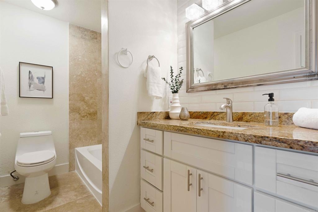 SINGLE LEVEL & VA APPROVED! This move-in ready, ground-floor condo has been tastefully updated and offers the perfect blend of style and convenience. Enjoy dual-pane windows, durable laminate flooring, and a modern kitchen featuring granite countertops, shaker-style cabinets, stainless steel appliances, and timeless subway tile backsplash. The remodeled bathroom includes a sleek vanity, tiled shower, and a freshly refinished tub. Located in a gated community with great amenities, including a swimming pool and BBQ area. Comes with one assigned parking spot and the option for a second for just $35/month. Ideally positioned near shopping, fitness centers, coffee shops, and all the charm of Third Avenue in Chula Vista. Just minutes to the future Gaylord Pacific Resort, Downtown San Diego, and with easy access to the 5 freeway.