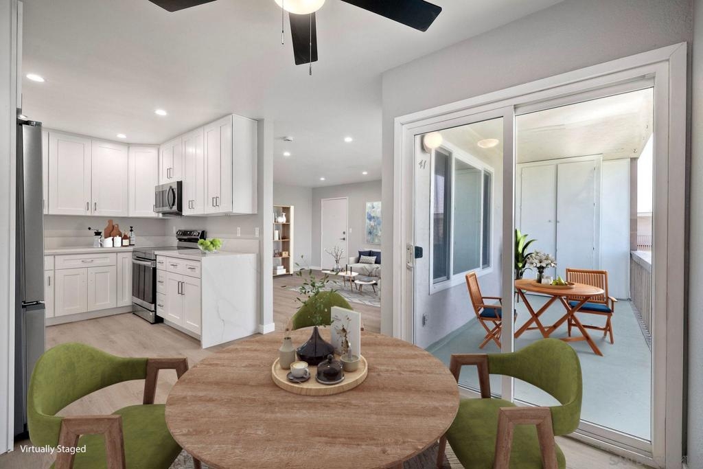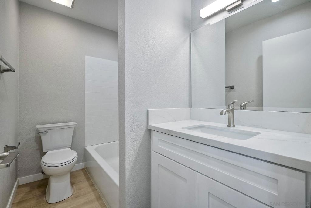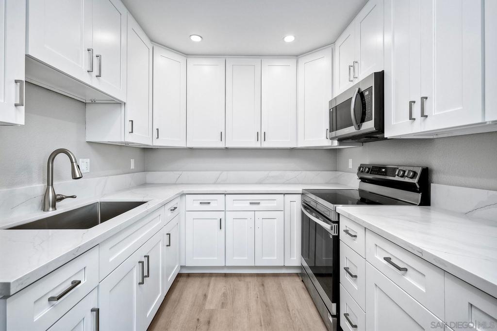 Beautiful remodeled one story condo with NO Mello Roos and Low HOA dues!!! Extensively upgraded with new cabinets, appliances, quartz countertops, flooring, upgraded bathrooms, new paint, lighting fixtures and much more!!! Located on the second floor with no neighbors above!!! Property is close to San Diego Country Club and Third Avenue!!! Must See!!!