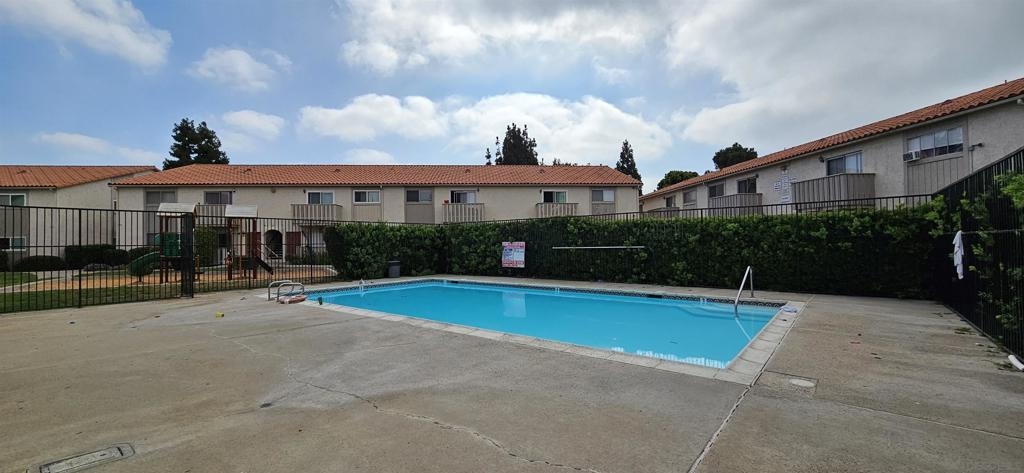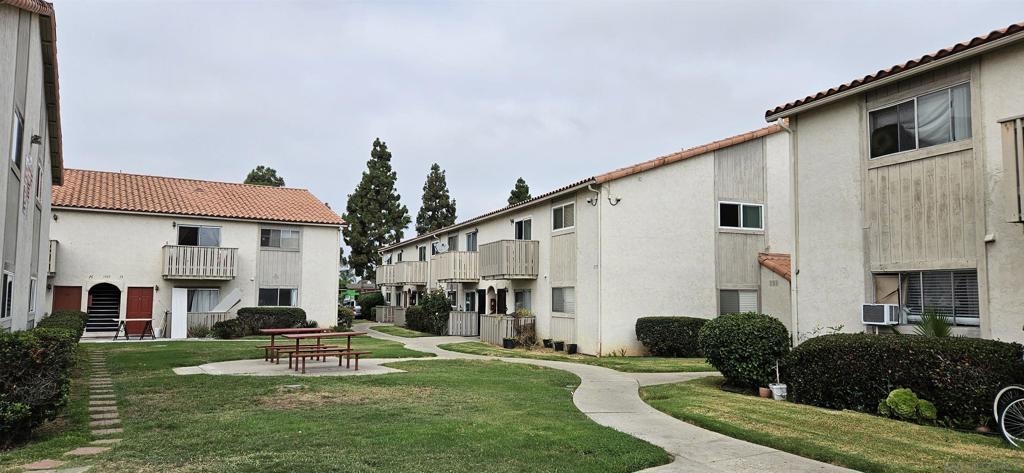 Freshly painted cute 1 bedroom, 1 bath, 636 sq.ft. with a European kitchen, updated, a patio, ground floor condo in a cute fully gated community which feature a playground, pool, community laundry, and barbeque.