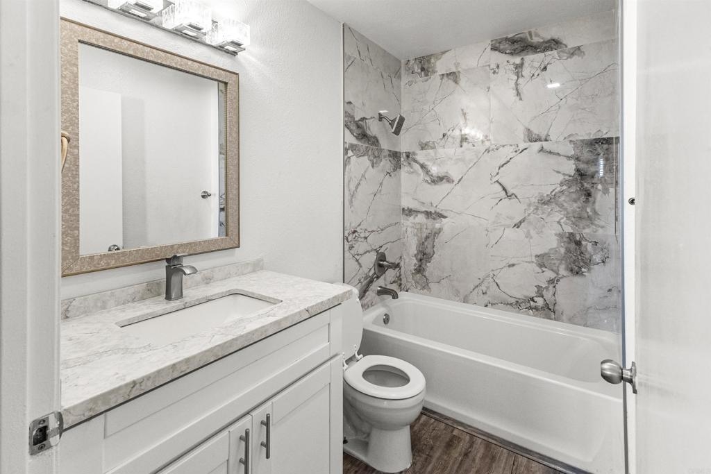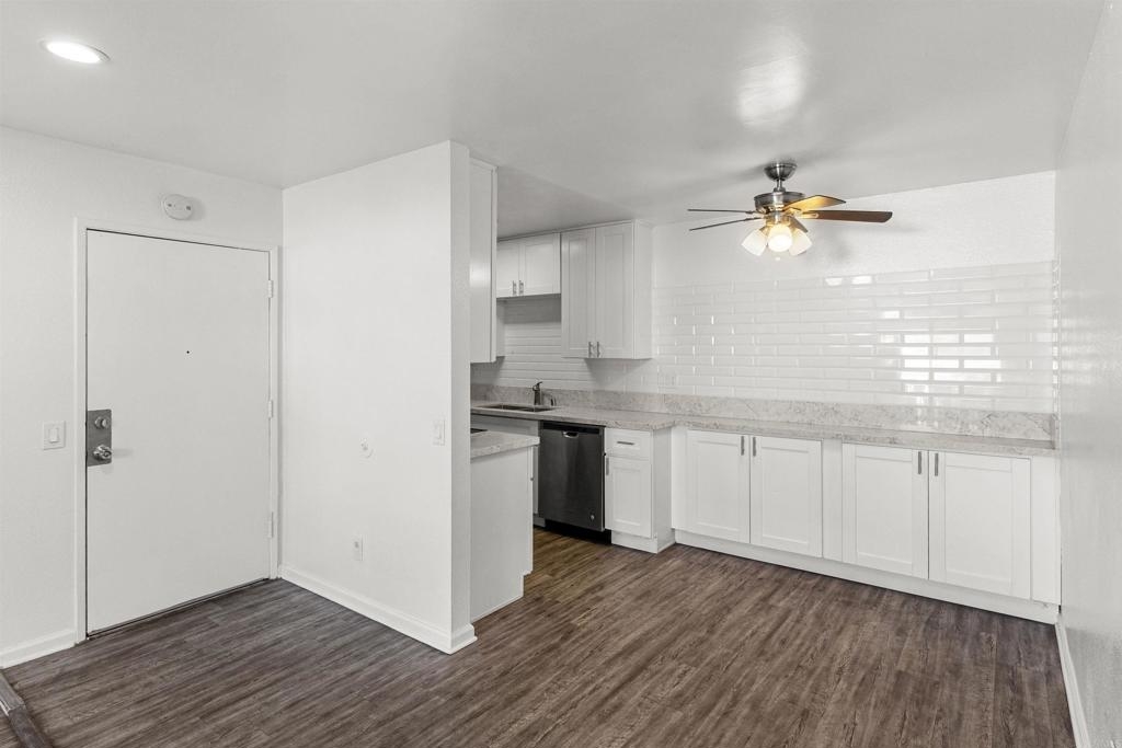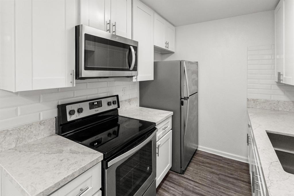 Modern & Move-In Ready, Just Pack Your Bags. This stylish 2 bedroom, 1 bath condo blends modern finishes with everyday comfort. Enjoy a modern kitchen with quartz countertops, sleek shaker cabinets, and stainless steel appliances. With vinyl plank flooring throughout, this home is perfect for first-time buyers. Located in Villa De Anita, a charming community in Chula Vista, enjoy peaceful amenities like a swimming pool, playground, laundry facilities, and assigned carport parking. Just minutes from the border, shops, restaurants, schools, beaches, and the San Diego Bay!