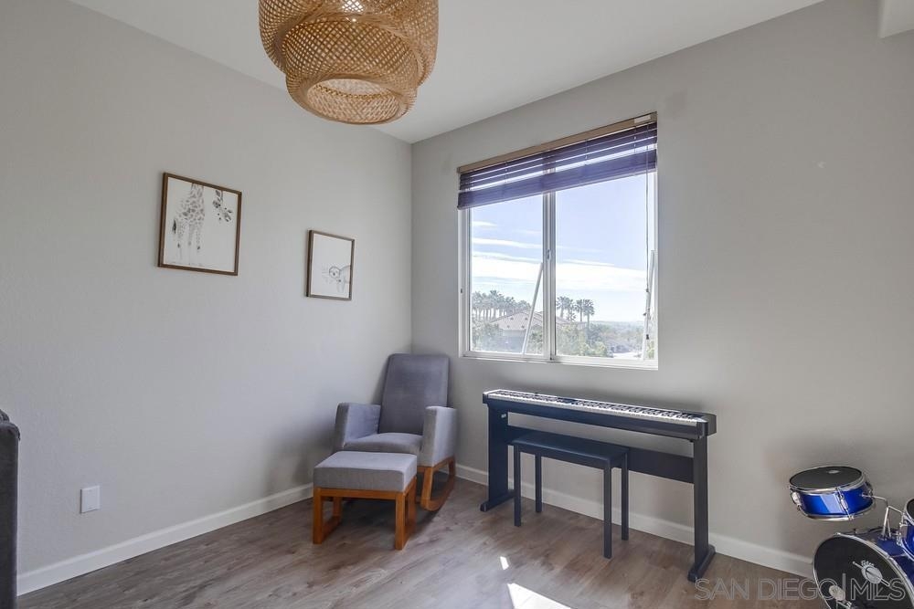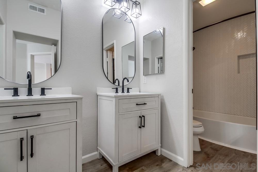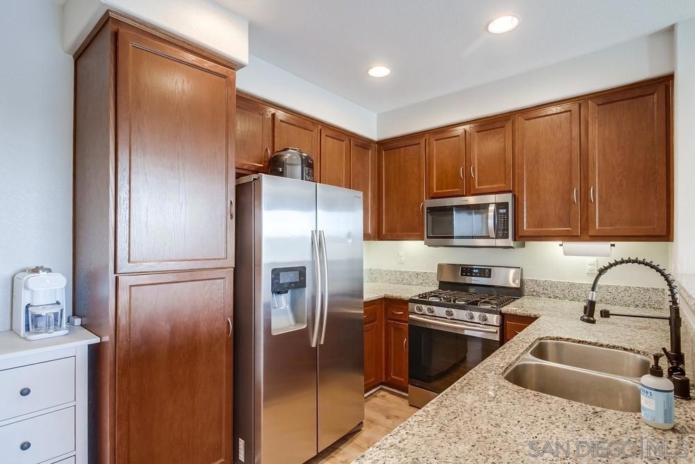 Welcome to Villagio at Lomas Verdes, a beautiful condominium community located in a highly sought-after area of San Diego County. This stunning two-story townhome features two bedrooms and two and a half bathrooms, spanning a total of 1110 sq ft. and includes upgrades throughout, a one-car garage, providing convenient and secure parking! As you enter, this lovely home opens up into an inviting open floor plan and plenty of natural light. The spacious living room seamlessly flows into the dining area and kitchen, creating the perfect setting for family gatherings and entertaining guests. The kitchen is fully equipped with modern appliances, ample counter space, and plenty of cabinetry, making it a joy to prepare delicious meals and snacks. The master bedroom boasts a walk-in closet and spacious bathroom with a dual sink vanity, soaking tub and shower. The second bedroom is also generously sized and has its own bathroom, providing privacy and convenience for your family and guests. Outside, you will find a beautifully maintained community with plenty of amenities. The complex includes two fully equipped gyms, making it easy for you to maintain an active lifestyle. Additionally, the complex is conveniently located across from the 7-acre Cottonwood Park and sports facility, which features a variety of recreational activities. The community is close to great schools, shopping centers, hiking and bike trails and two large parks, providing endless opportunities for outdoor play. The nearby rapid transit system also makes it easy to explore other parts of San Diego County. Dog friendly and incredibly safe, this property is a rare find!