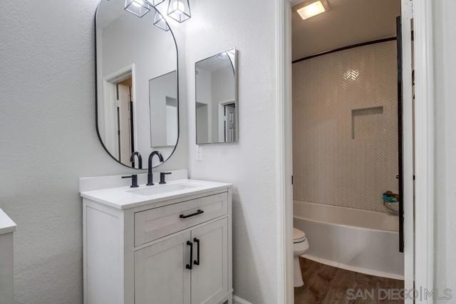 Welcome to Villagio at Lomas Verdes, a beautiful condominium community located in a highly sought-after area of San Diego County. This stunning two-story townhome features two bedrooms and two and a half bathrooms, spanning a total of 1110 sq ft. and includes upgrades throughout, a one-car garage, providing convenient and secure parking! As you enter, this lovely home opens up into an inviting open floor plan and plenty of natural light. The spacious living room seamlessly flows into the dining area and kitchen, creating the perfect setting for family gatherings and entertaining guests. The kitchen is fully equipped with modern appliances, ample counter space, and plenty of cabinetry, making it a joy to prepare delicious meals and snacks. The master bedroom boasts a walk-in closet and spacious bathroom with a dual sink vanity, soaking tub and shower. The second bedroom is also generously sized and has its own bathroom, providing privacy and convenience for your family and guests. Outside, you will find a beautifully maintained community with plenty of amenities. The complex includes two fully equipped gyms, making it easy for you to maintain an active lifestyle. Additionally, the complex is conveniently located across from the 7-acre Cottonwood Park and sports facility, which features a variety of recreational activities. The community is close to great schools, shopping centers, hiking and bike trails and two large parks, providing endless opportunities for outdoor play. The nearby rapid transit system also makes it easy to explore other parts of San Diego County. Dog friendly and incredibly safe, this property is a rare find!