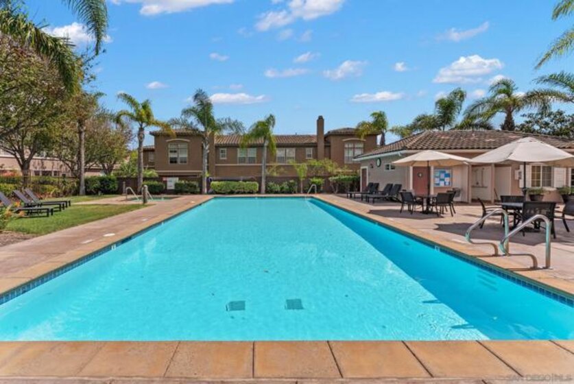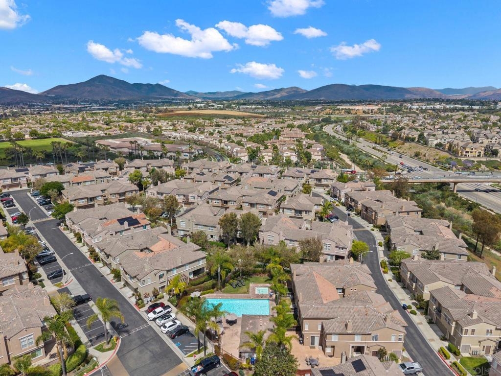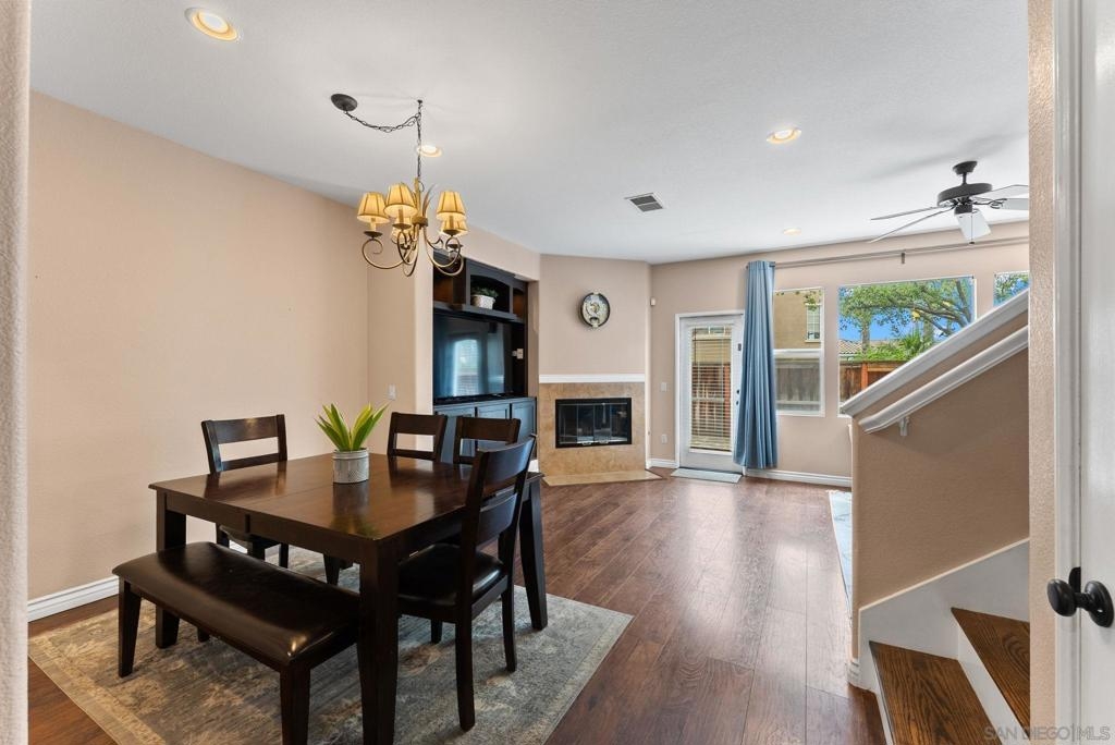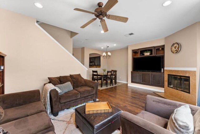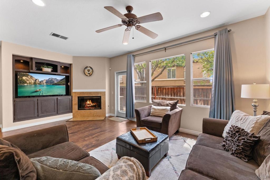 Welcome to this 3-bedroom, 2.5-bath townhome in the highly sought-after Vista Sonrisa community of Otay Ranch. The open-concept floor plan is ideal for entertaining, featuring a spacious living room with fireplace and built-in entertainment center that flows into the dining area and private patio for seamless indoor-outdoor living. The kitchen offers a center island, granite countertops, glass tile backsplash, travertine flooring, and a large pantry. The primary suite features an en-suite bath and walk-in closet. Additional highlights include a one-car garage and access to resort-style amenities including a pool, BBQ area, and manicured grounds. FHA & VA approved complex.
