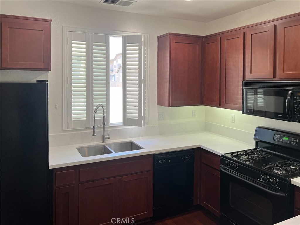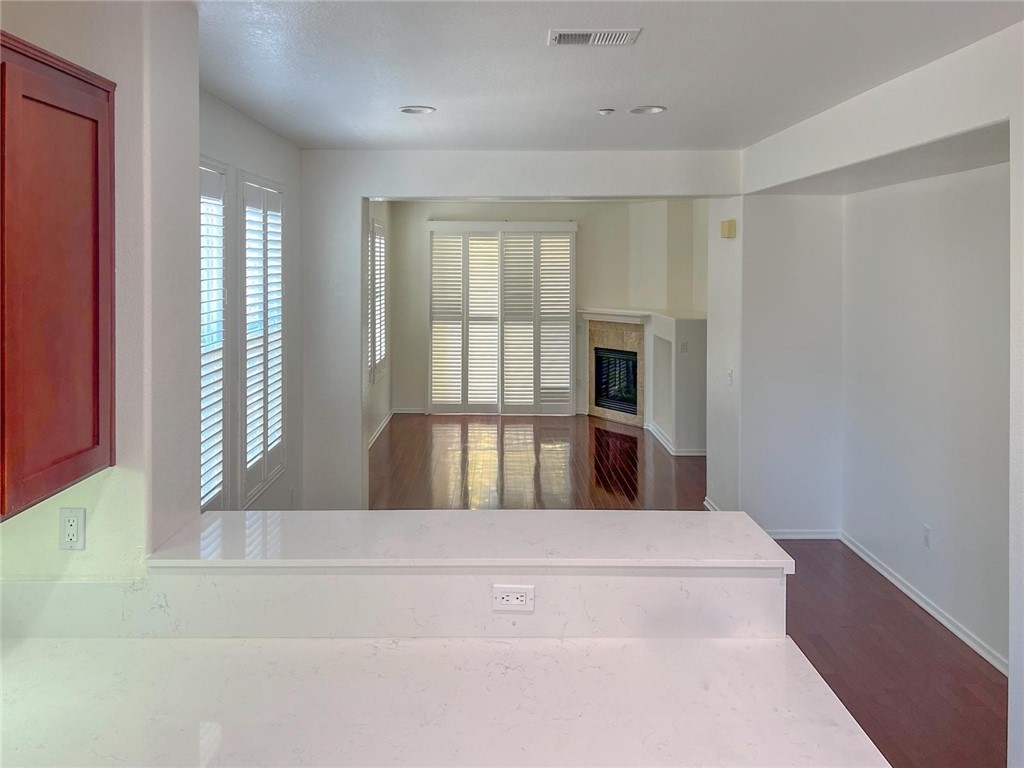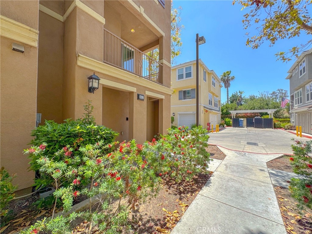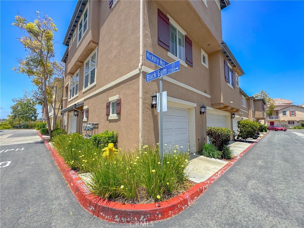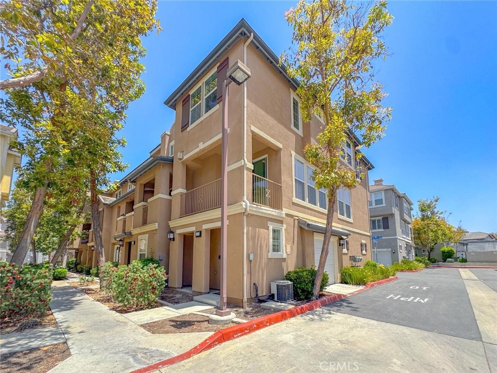 Welcome to this beautifully maintained tri-level corner unit condo offering 1,494 square feet of comfortable and functional living space. This home features 3 bedrooms and 2.5 bathrooms, along with an attached two-car garage located on the first level for easy access and added convenience. On the second floor, you'll find an open-concept living area with an updated kitchen complete with brand-new countertops. The living room features a cozy fireplace and opens to a private balcony, perfect for relaxing or entertaining. A powder bathroom and a separate laundry room are also located on this level, offering both practicality and style. The top floor includes all three bedrooms, including a spacious primary suite with its own en-suite bathroom. The additional two bedrooms are well-sized and share a full bathroom, making this layout ideal for families or guests. Located in a well-maintained community with low Mello-Roos and special assessments, this home also offers access to excellent amenities including a community pool and park. Conveniently situated near shopping centers and everyday essentials, this condo blends comfort, value, and lifestyle in one great package.