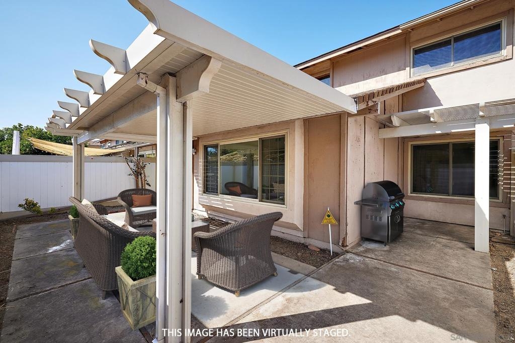 In San Diego County, seize the opportunity for homeownership with this remarkable home in Windsor Heights. The home is zoned as a Single Family Detached/PUD Per County Assessor. One shared common wall. Featuring a spacious floor plan with 3 bedrooms, 2 Full baths, & 1,275 square feet of living space, this two-story end unit offers SFR life style. One full bedroom and bath downstairs. No neighbors above or below. Private backyard for lounging and entertaining. Direct backyard entrance. The property boasts new paint, carpet, upgraded plumbing/electrical features, and a direct access 2-car garage. Oversized garage with built ins and potential office type space. Enjoy a peaceful park-like complex with easy access to freeways, shopping, and schools!