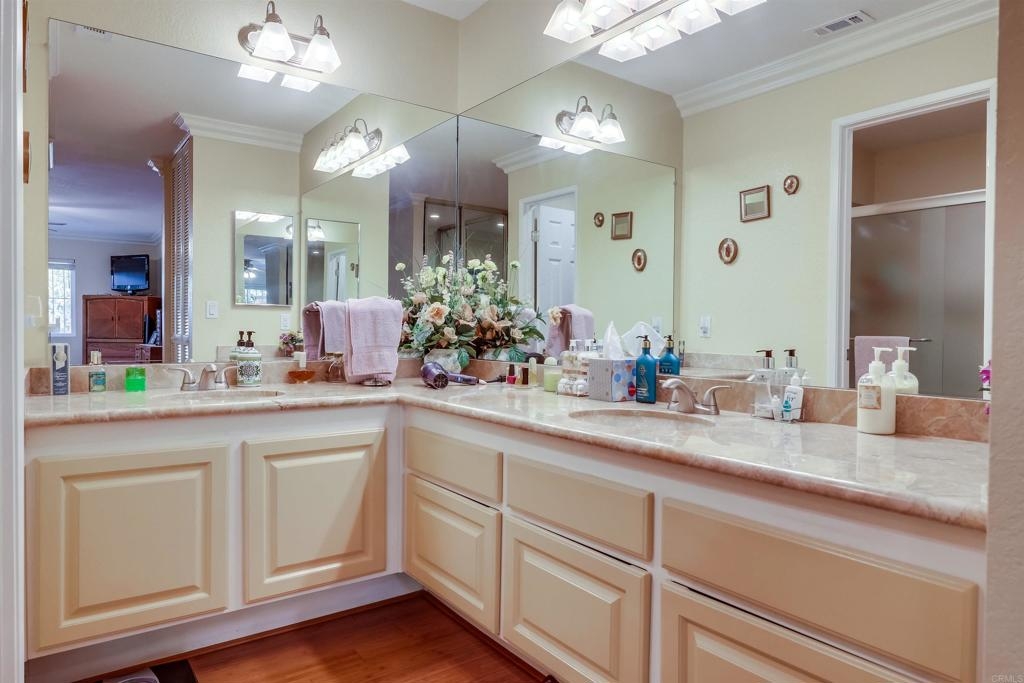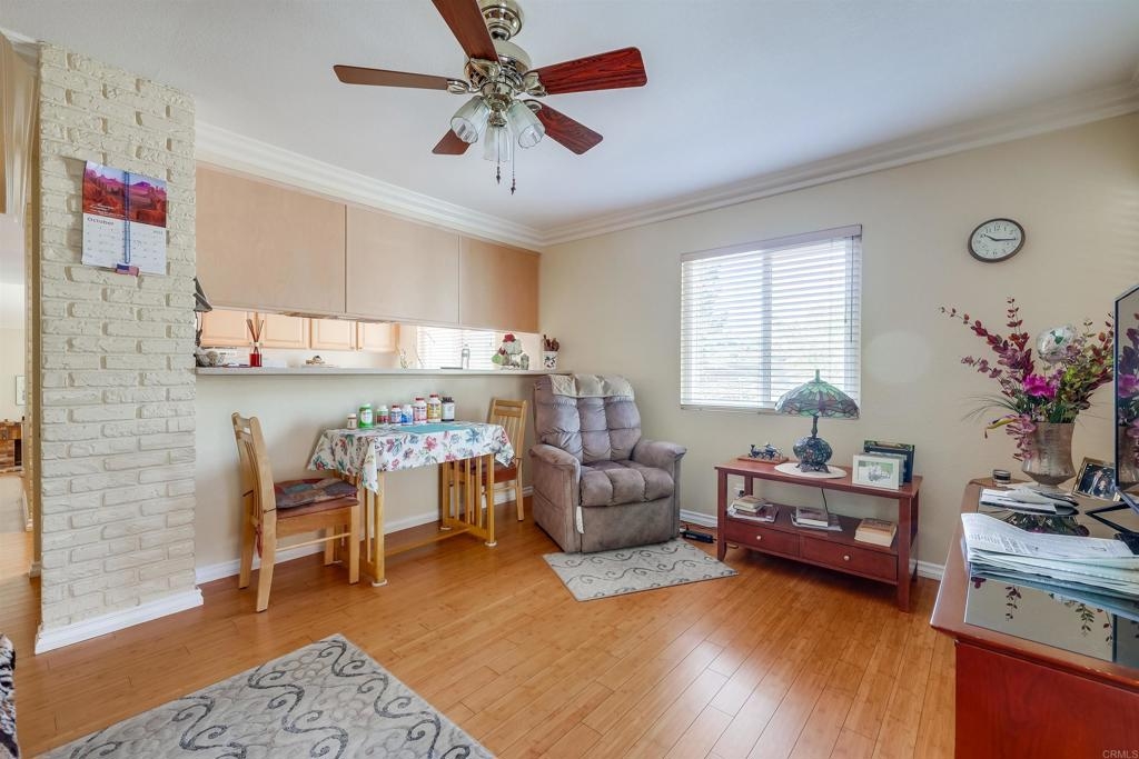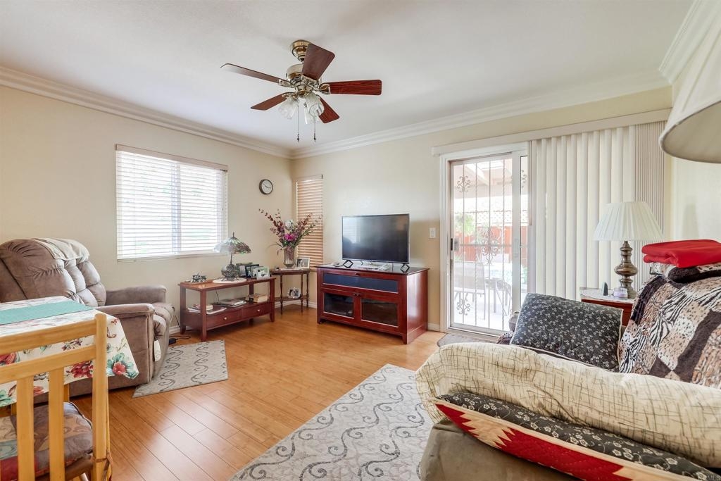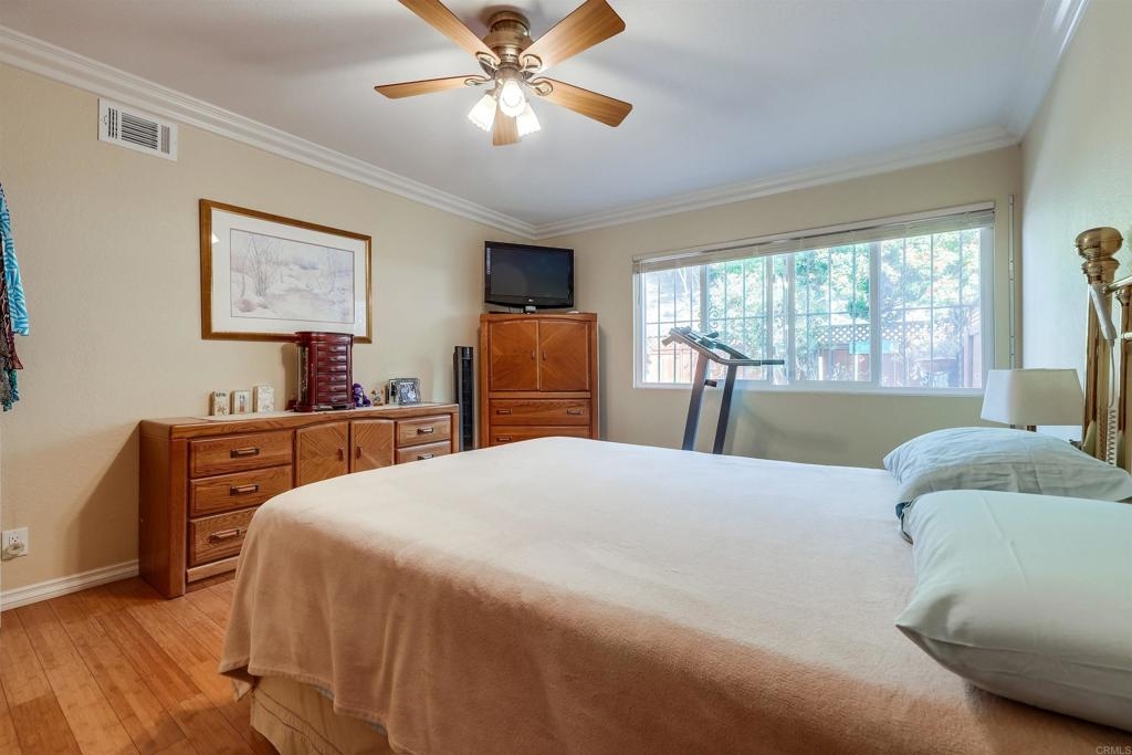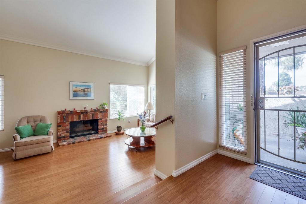 Windsor View home highly upgraded, 1677 sq ft with polished Brazilian hardwood flooring throughout, crown molding, Newer AC, Newer water heater, Newer FAG heating system, kitchen updated with Newer appliances, countertops, lots of cabinets all view family room. Formal living room offers fireplace and custom cabinet, high vaulted ceilings, wet bar area. All windows were upgraded. Private backyard patio area. Attached oversized 2 car garage with an extra loft room for storage or hobby room. Both bathrooms have upgraded tiled showers and marble counters. Pride of Ownership throughout. Low HOA fees, well cared for quiet community close to hospital, freeway access, NO Mello Roos.