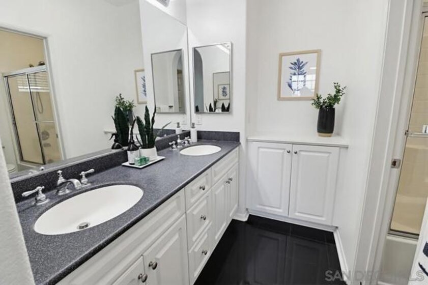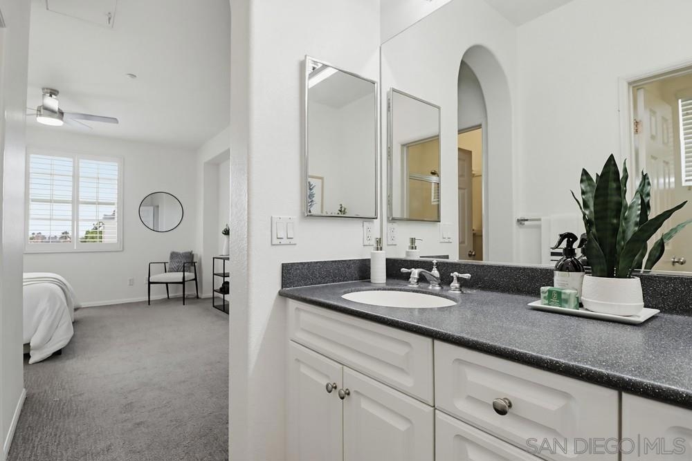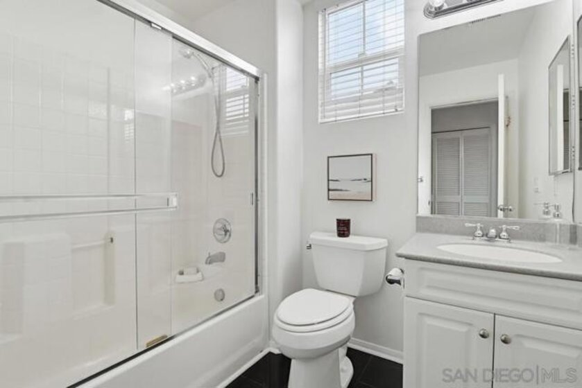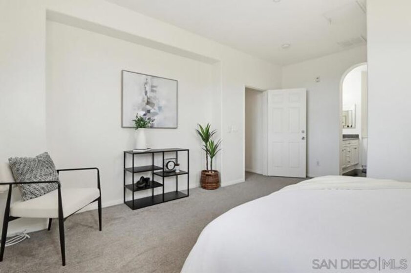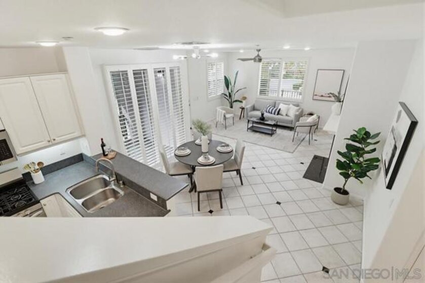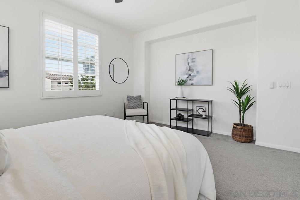 Stunning light-filled 1586 square foot 3-bedroom, 2.5-bath end-unit townhome in beautiful Hearthstone Village in Otay Mesa! This amazing home has been beautifully upgraded with contemporary finishes, including stainless steel appliances, recessed lighting, and plantation shutters. This beautiful residence offers an open, airy layout with abundant natural light and designer touches throughout. The main living area features a spacious great room with seamless flow to the kitchen and dining area, a lovely fireplace, and direct access to a private patio—ideal for relaxing or entertaining. The second floor boasts two generously sized bedrooms, each with ample closet space and access to an extra office/study area, and a shared full bathroom. Also on this floor is a conveniently located laundry closet with a full-sized washer and dryer. Upstairs, the beautiful light-filled primary suite includes a upgraded ensuite bath with dual sinks and a large walk-in closet, offering both privacy and space. This amazing home also includes an attached two-car garage providing convenience and additional storage space. Residents enjoy access to community amenities including two pools, BBQ and picnic areas, and nearby parks. Conveniently located near top-rated schools, hiking trails, shopping and dining at Otay Ranch Town Center. Come see this amazing home and enjoy the absolute best of Otay Mesa living!