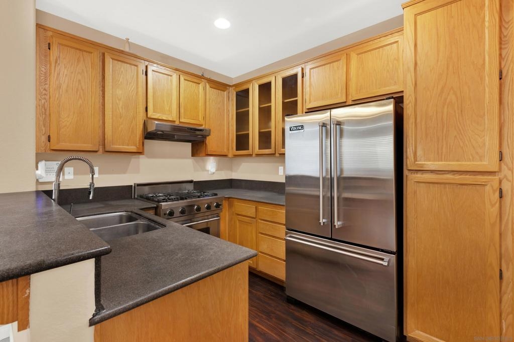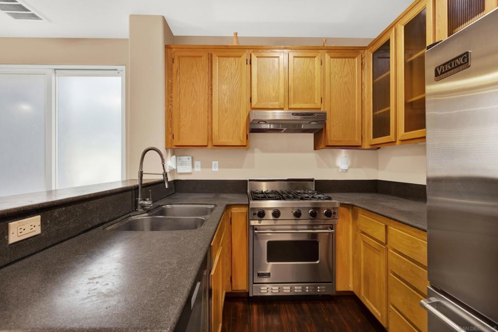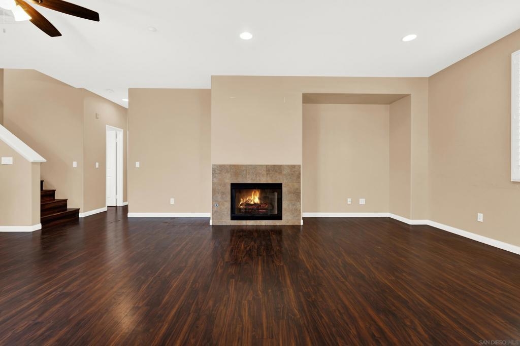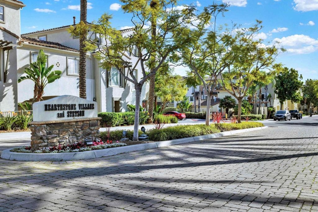 Priced to sell home in desirable Hearthstone Village. This tri-level features beautiful wood flooring throughout, as well upgraded kitchen with corian countertops and stainless steel appliances. There is a fireplace in the living room with convenient full sized laundry on the 2nd floor. With ample windows, this unit shows light and bright. Besides the front porch you will have a tiled balcony to enjoy. The location is very convenient to freeways, shopping, parks, dining, and top-rated schools.