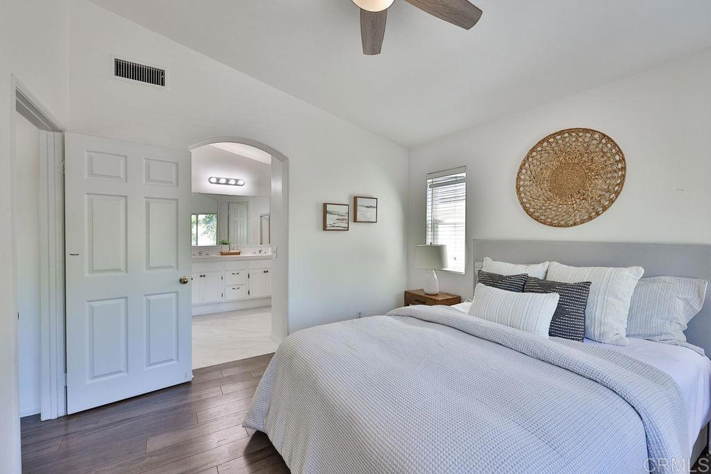 Welcome to the gated community of Sycamore Ridge located in Eastlake Trails. This 2 bedroom, 2 bathroom townhome style condo is turn key & ready for its new owner. It is also VA and FHA approved! The layout is ideal! You walk into the house & go straight upstairs. Once upstairs, all living space is on a single level with a bedroom & full bathroom on each side of the unit providing maximum privacy for each! There is no unit below or above! The vaulted ceilings & abundant natural light make the space feel open & bright. The light paint colors, solid surface flooring throughout, quartz countertops & designer black splash in the kitchen give the home a custom look. In addition to looking great, this property has all the comfort & convenience features buyers are looking for such as, central heating & air conditioning, an attached garage & a washer/dryer dedicated to the unit. In addition to the 1 car garage, the unit comes with a dedicated parking space and a guest parking pass. The location of this community is ideal. With easy freeway access, walking distance to a park and recreation area and access to multiple pools, tennis courts and basketball courts. But wait...there's more! This property has a low HOA and very low Mello Roos. Even better, the Mello Roos is set to expire in Tax year 2028/2029! This one will go quickly.
