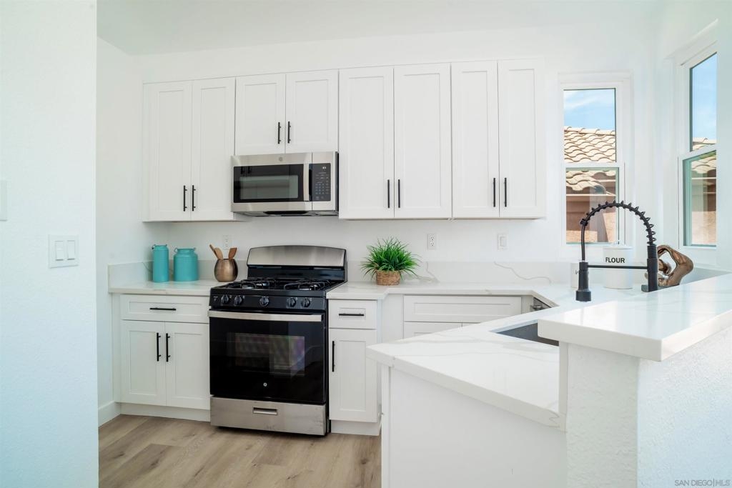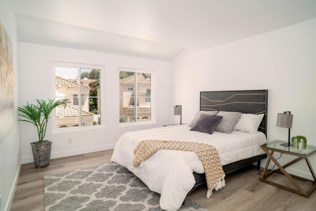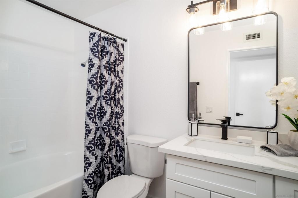 This move in ready FULLY REMODELED 2-bed, 2-bath condo in Chula Vista's Serena Community offers privacy and comfort. Conveniently located with easy access to highways, it's near the beach, downtown San Diego, military bases, shopping, hiking, and dining. Overlooking Discovery Park, it provides outdoor recreational opportunities. The open floor plan features, new flooring, paint, an updated kitchen with new SS appliances, baths with shaker cabinets and quartz countertops. There is an abundance of windows creating a bright, spacious feel, complemented by a gas fireplace. Enjoy outdoor meals on the private balcony. With a primary suite downstairs, secondary bedroom upstairs, and ample storage, it's a cozy retreat. Includes a single-car attached garage with epoxy flooring. Both heater and A/C have been serviced. Come see this one before it's gone!