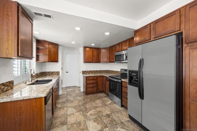 1465 Summit Drive is a move-in ready 2-bedroom, 2.5-bath townhome with an attached 2-car garage, over 1,450 sq ft of living space and two private patios, ideally located in the desirable Eucalyptus Ridge community. Easy access to I-805 and just minutes from Southwestern College, Costco, Home Depot, Lucky Strike Bowling, shopping, schools, dining, and everyday conveniences. No Mello Roos for added savings! Step into a bright and inviting living room featuring high ceilings and a cozy woodburning fireplace with upscale stacked stone façade, creating a warm yet sophisticated focal point. French doors open to one of the private patios, offering seamless indoor-outdoor living. The adjacent dining area features beautiful shutters and access to the second patio, providing multiple outdoor spaces perfect for relaxing or entertaining. Fresh paint and hard surface flooring throughout create a clean, low-maintenance interior. The sunny kitchen offers granite countertops, stainless steel appliances, recessed LED lighting, and a bright breakfast nook with a built-in desk, ideal for a convenient home office or study area. A Nest thermostat adds a smart, energy-efficient touch to the home's modern comforts. Upstairs, both bedrooms are generously sized. The primary suite features soaring vaulted ceilings and its own private bath, while both bedrooms include mirrored wardrobe doors and built-in linen cabinets in addition to their closets, providing excellent storage. Eucalyptus Ridge is a well-maintained community in the heart of Chula Vista featuring mature landscaping, lush greenery, and a peaceful residential setting. Residents enjoy access to a sparkling community pool and spa, guest parking, and VA approval in a low HOA neighborhood with NO Mello-Roos. Ideally located just off H Street and directly across from Southwestern College, the complex is within walking distance to elementary, middle, and high schools, shopping centers, Costco, Home Depot, Lucky Strike Bowling, dining, and everyday conveniences. With easy freeway access and a central South Bay location, Eucalyptus Ridge offers a highly desirable blend of comfort, convenience, and community living.