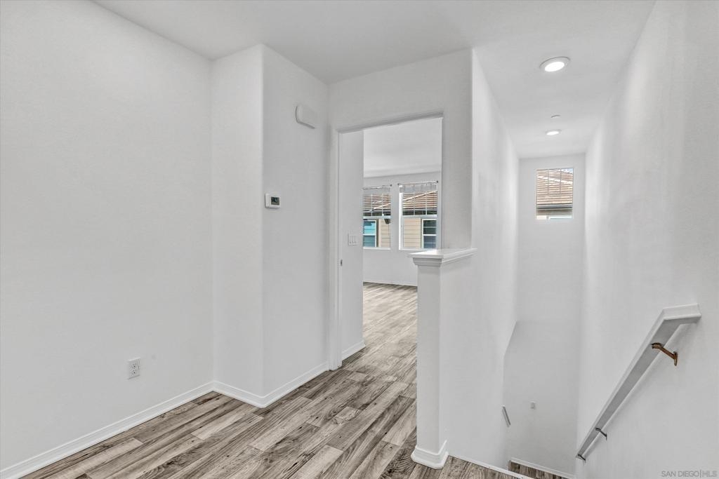 Welcome to this beautifully appointed 3-bedroom, 2.5-bath townhome offering 1,323 sq ft of modern living in the highly sought-after Lake Pointe community of Chula Vista. This light-filled home features an open-concept floor plan with high ceilings, elegant wood laminate flooring, and a stunning kitchen complete with granite countertops and stainless-steel appliances, including a French door refrigerator, 6-burner gas range, mounted microwave, dishwasher, and double-basin sink. The kitchen flows seamlessly into the spacious living area, enhanced by abundant natural light. The generous primary suite boasts a walk-in closet and a well-appointed ensuite bath with dual vanities. Secondary bedrooms are thoughtfully designed, with a split bathroom featuring a double vanity and convenient hallway access. Additional highlights include in-unit A/C, a separate laundry room, LED lighting, and a tankless water heater. Enjoy the convenience of an attached 2-car garage with direct kitchen access and a large private front patio perfect for relaxing or entertaining. Residents of Lake Pointe enjoy resort-style amenities including a community pool, spa, hot tub, clubhouse, and BBQ picnic areas. Ideally located within walking distance to the Olympic Training Center, Mountain Hawk Park, and scenic neighborhood trails, with easy access to parks, shopping, dining, and playgrounds. This home offers the perfect blend of comfort, convenience, and community living.
